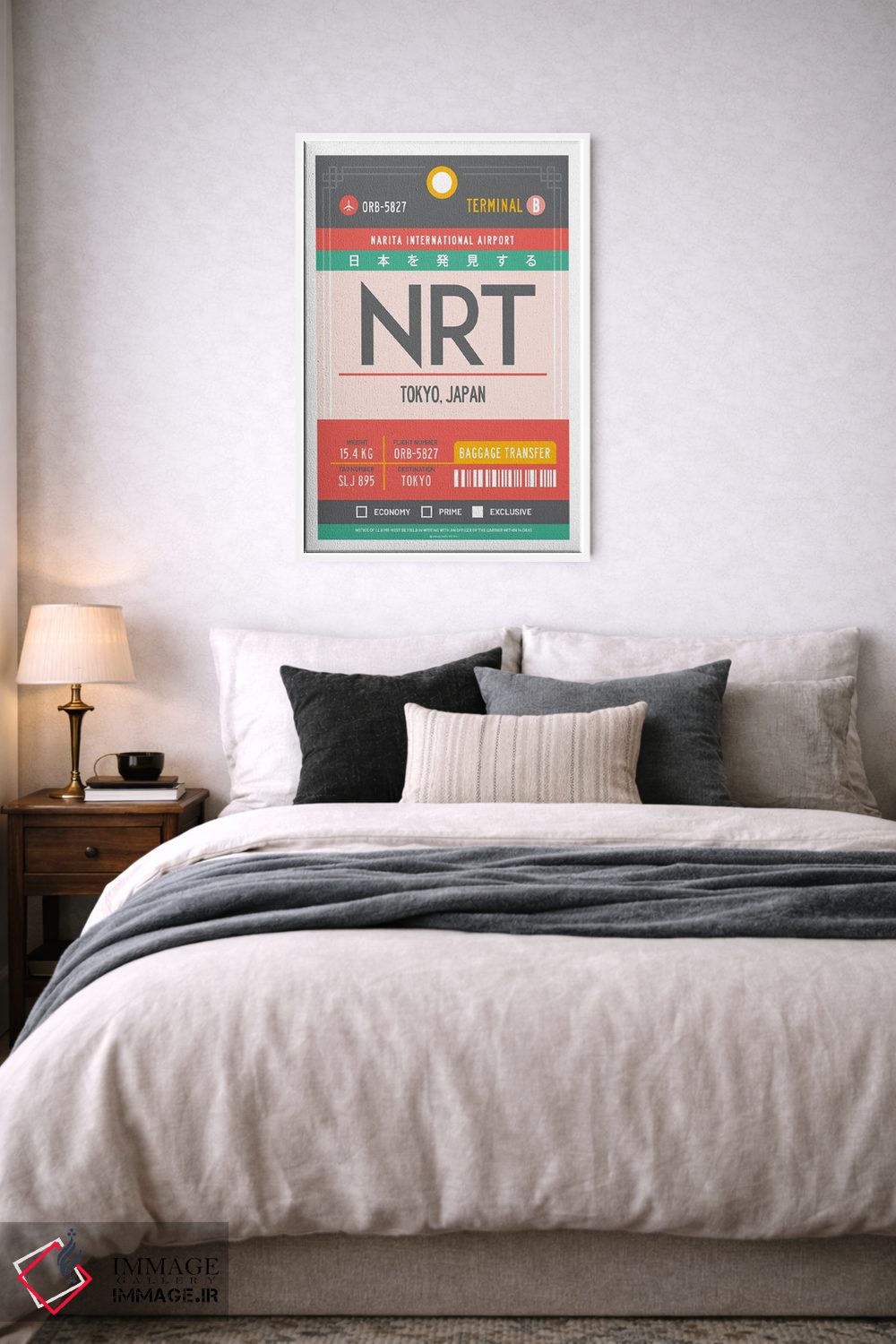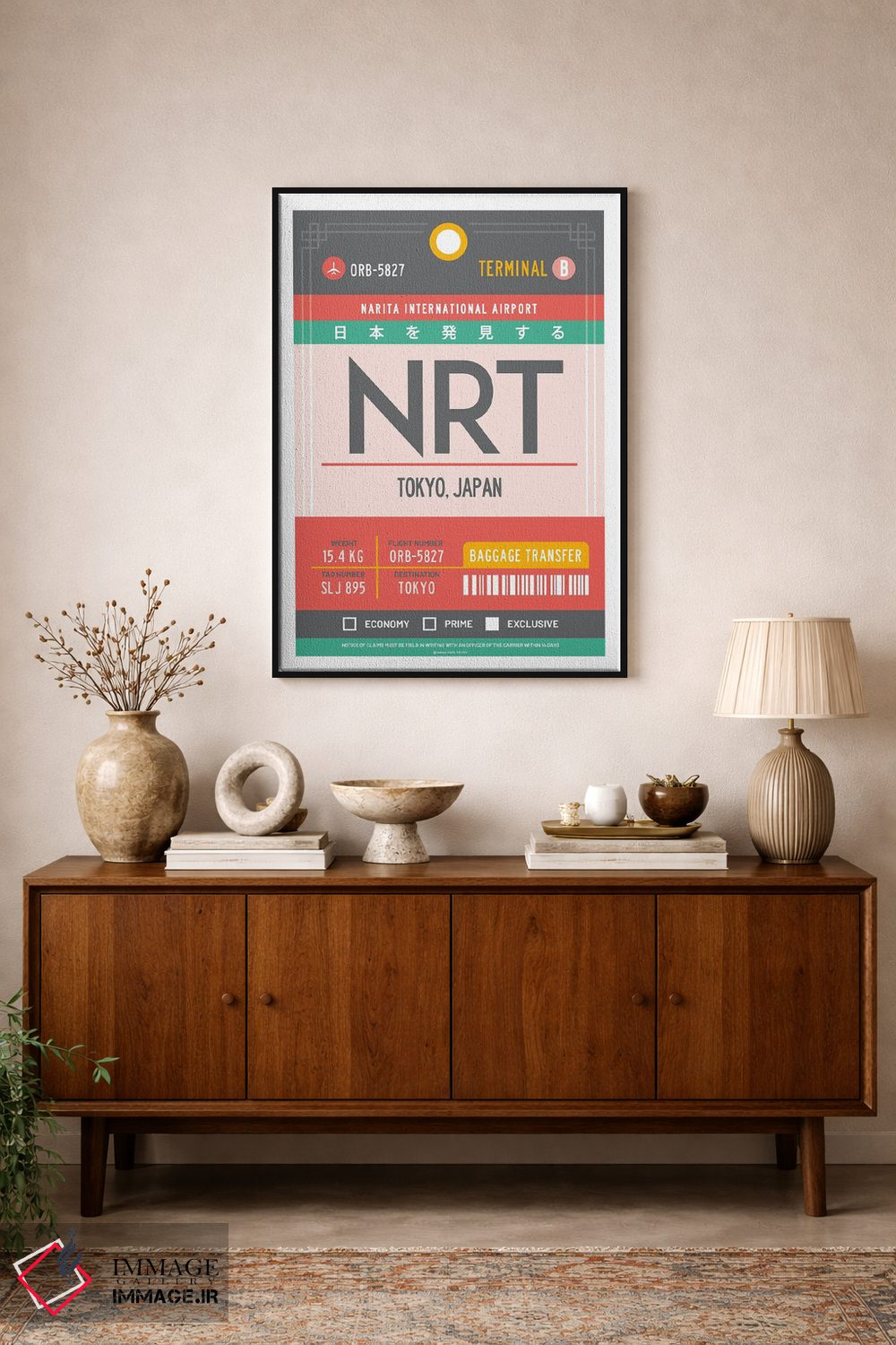 «پوستر سفر با برچسب فرودگاه توکیو ژاپن» اثرِ «اولا هوپ تراول پوسترز (پوسترهای مسافرتی؛ استودیو هنری)» با موضوعِ این اثر، یک نقطهٔ آرام برای چشم میسازد—و با پرداختی هنری خیلی خوشنشین است.