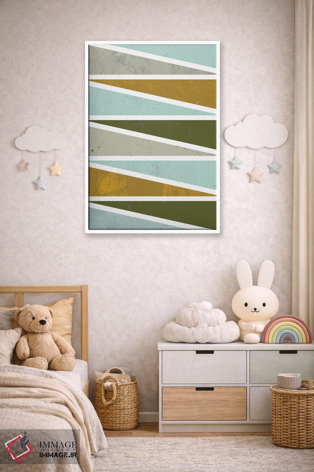 براساس پالت ترکیبی اثر، قاب تیک گرم (چوبی) پیشنهاد اول است و مشکی مات (فریم متوسط) مکمل. برای سفارشهای پروژهای با ابعاد و قابهای اختصاصی با ایماژ در تماس باشید.