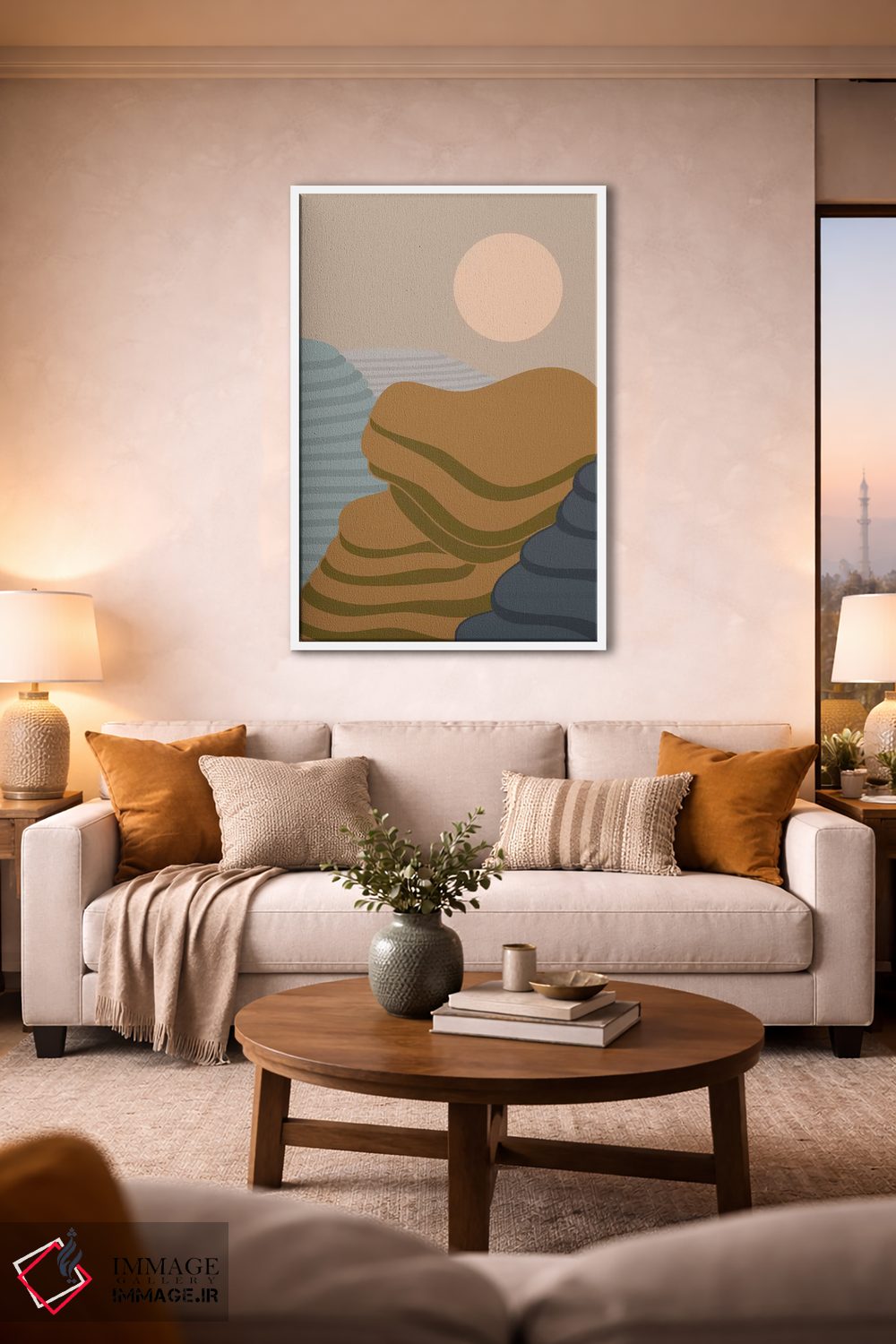 بوم گالری ایماژ طوری طراحی شده که اثر روی دیوار «پرداختشده» و حرفهای دیده شود—نه پرزرقوبرقِ بیپایه؛ بلکه دقیق و خوشپرداخت. بافت ظریف کنواس کمک میکند حس اثر هنری را در نگاه نزدیک نگه میدارد و همین «پرداخت» تفاوت را میسازد. با قابپذیری، قاب مناسب مرز بصری تمیزتری به اثر میدهد بهخصوص وقتی نور موضعی ملایم داشته باشید. حاصل کار، یک تابلو خوشنشین است که هم از دور اثرگذار است و هم از نزدیک خوشخوان؛ و اگر بخواهید، میتوان چیدمان را برای گالریوال هم پیشنهاد داد.