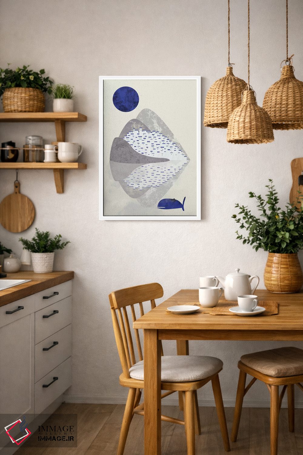 «خانههای ساحلی» اثرِ «فلتاول (نام یا استودیوی هنری)» در قالب هنری، به فضا عمق و ریتم میدهد؛ برای کنار مبلمان ساده و نورپردازی گرم عالی است.