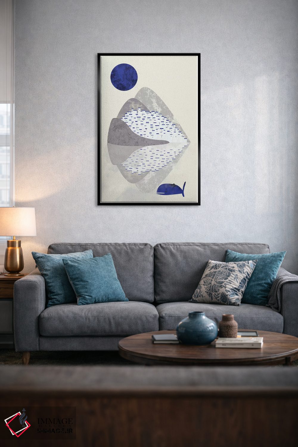 براساس پالت سرد اثر، قاب سفید مات (فریم باریک) پیشنهاد اول است و نقرهای برسخورده (متالیک) مکمل. برای سفارشهای پروژهای با ابعاد و قابهای اختصاصی با ایماژ در تماس باشید.