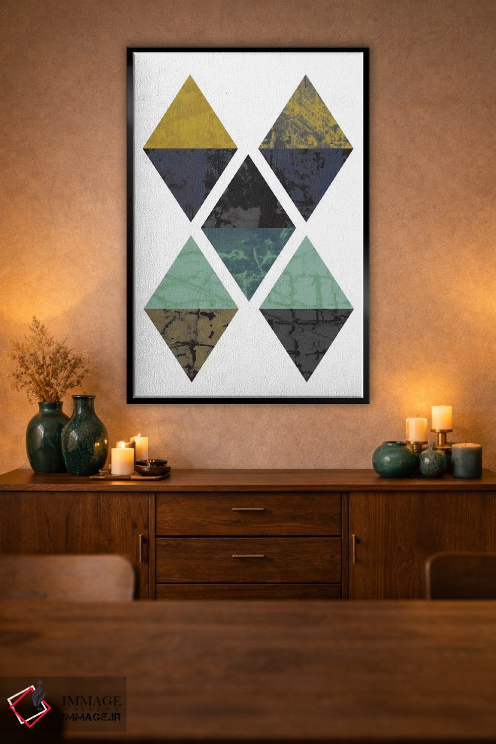 براساس پالت گرم اثر، قاب تیک گرم (چوبی) پیشنهاد اول است و مشکی مات (فریم متوسط) مکمل. برای سفارشهای پروژهای با ابعاد و قابهای اختصاصی با ایماژ در تماس باشید.