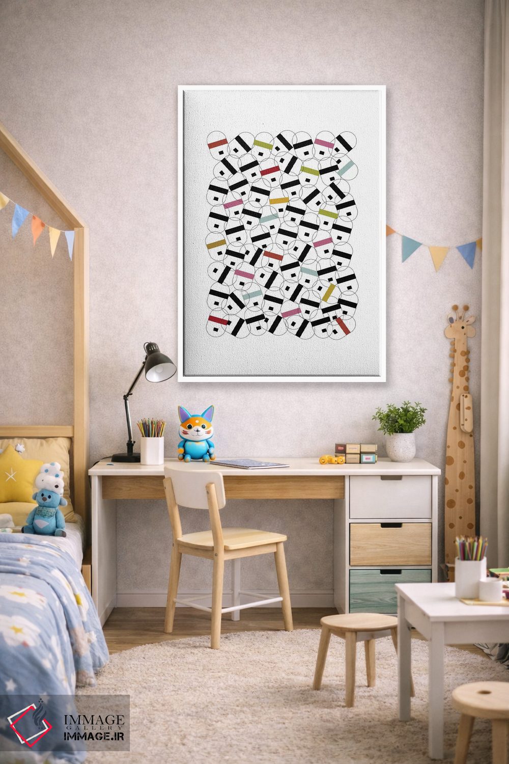 بوم گالری ایماژ طوری طراحی شده که اثر روی دیوار «پرداختشده» و حرفهای دیده شود—نه پرزرقوبرقِ بیپایه؛ بلکه دقیق و خوشپرداخت. بافت ظریف کنواس کمک میکند حس اثر هنری را در نگاه نزدیک نگه میدارد و نتیجه را یکدستتر میکند. با ارائهی آماده نصب، برای یک ارائهی حرفهای ضروری است و نتیجه را یکدستتر میکند. حاصل کار، یک تابلو خوشنشین است که هم از دور اثرگذار است و هم از نزدیک خوشخوان؛ برای هدیهی هنری هم انتخاب محترمانهای است. اگر یک اکسنت رنگی کوچک در اکسسوریها تکرار شود، هماهنگی فضا کاملتر میشود.