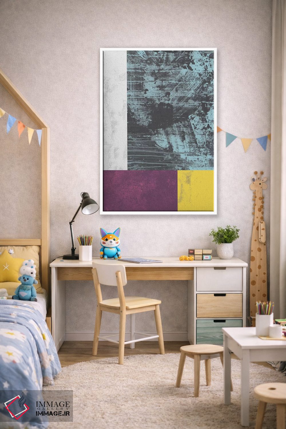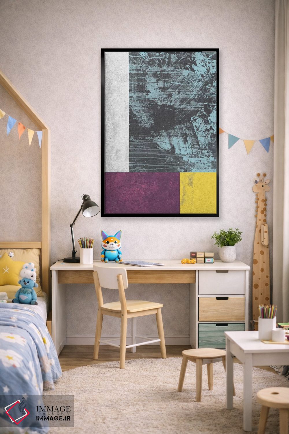 تابلو مینیمال "گرنج هندسی I" اثر فلت اول - نمای روبه‌رو روی دیوار