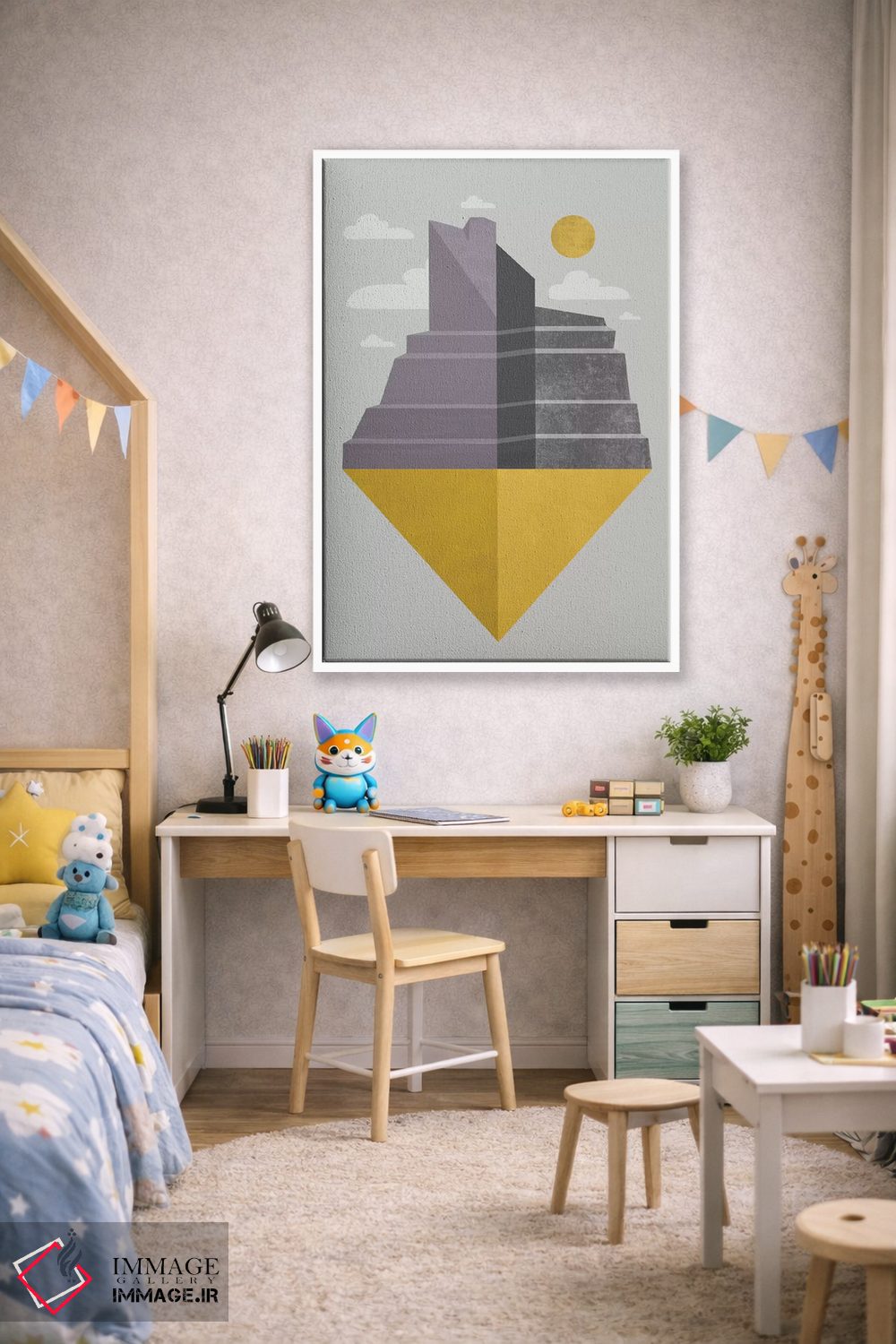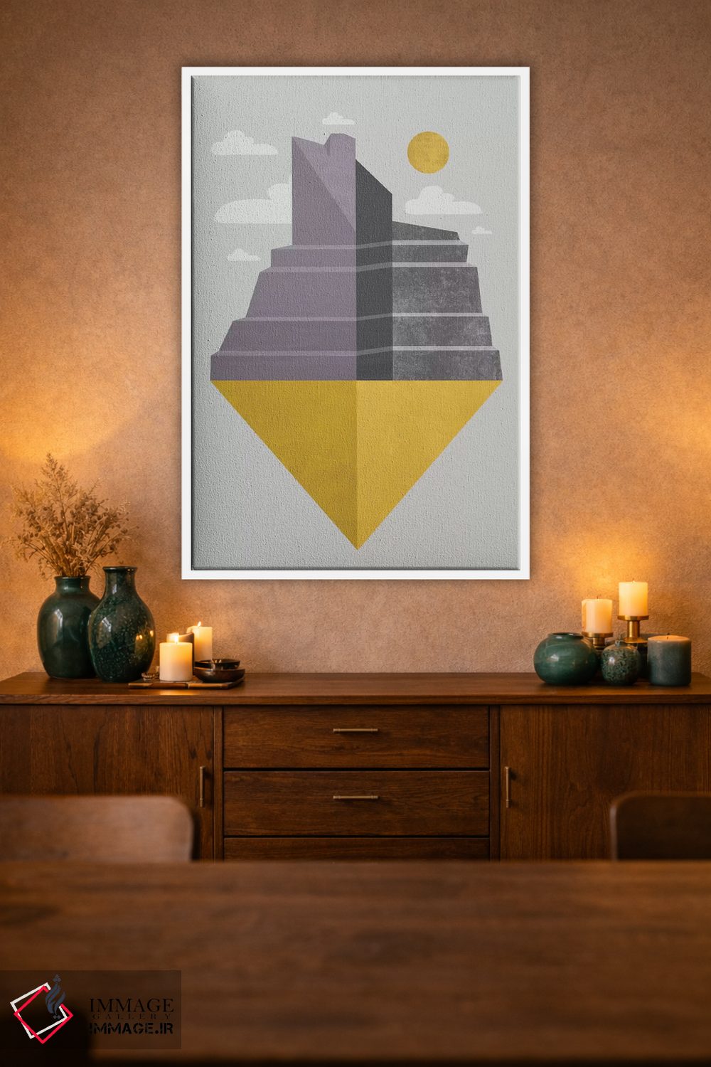 «"گرند کنیون (دره بزرگ)"» اثرِ «فلتاول (نام یا استودیوی هنری)» یک انتخاب مدرن است؛ سبک هنری کمک میکند چیدمان مرتب بماند و دیوار حرفهای دیده شود.