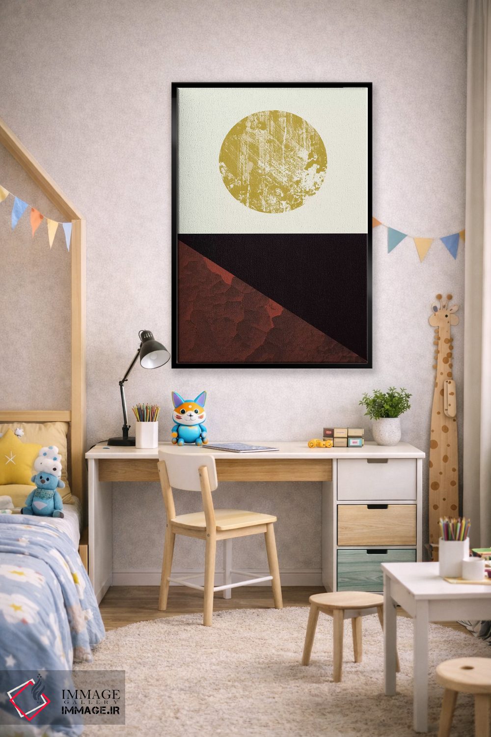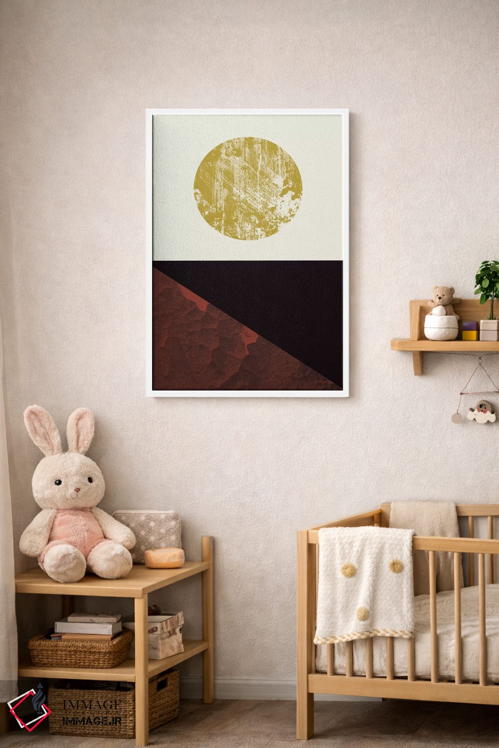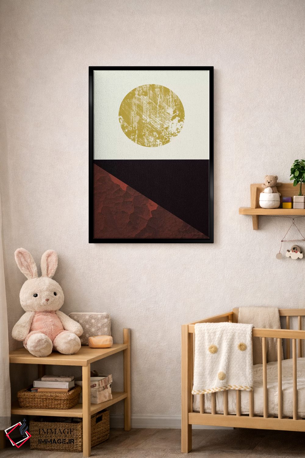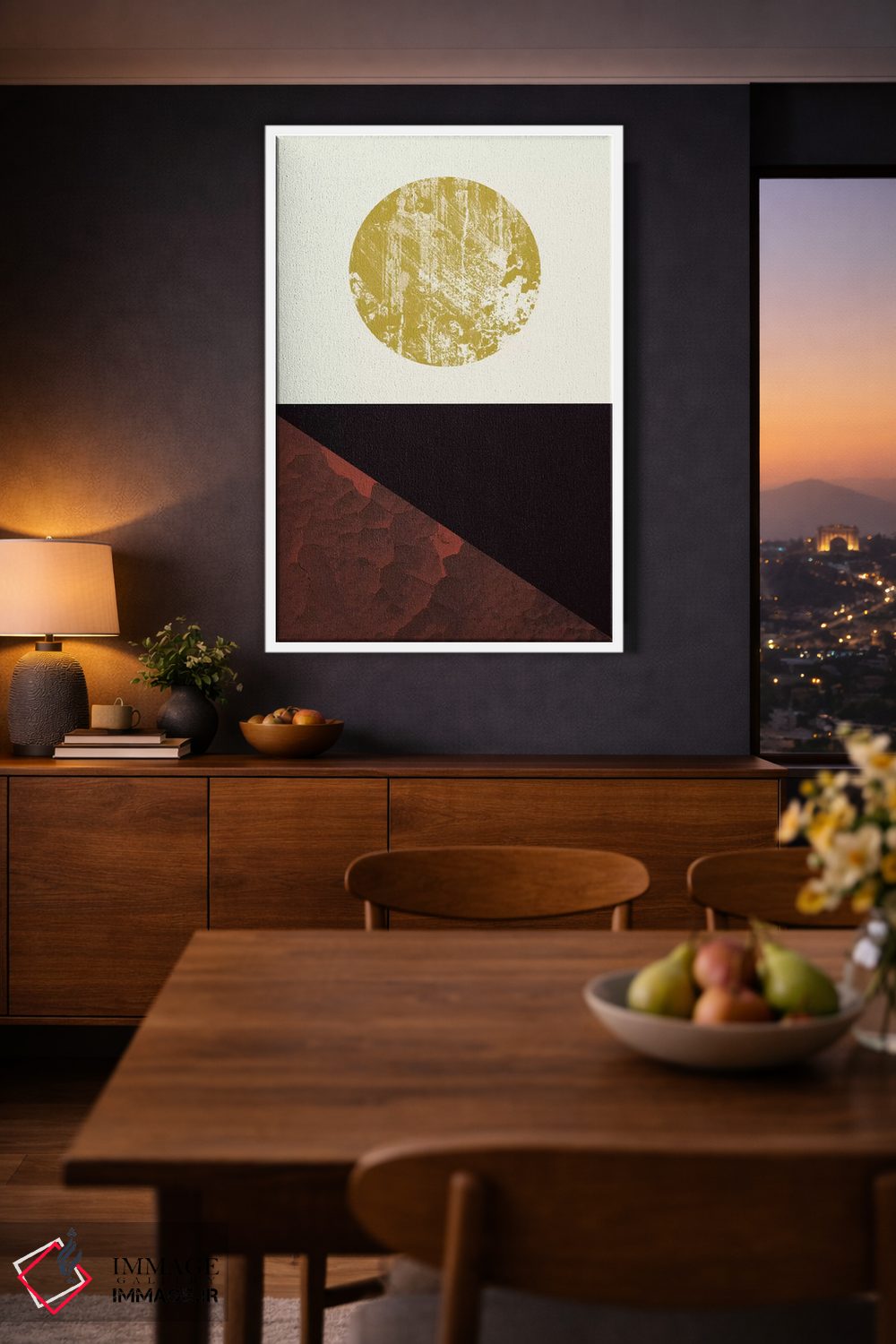 براساس پالت گرم اثر، قاب تیک گرم (چوبی) پیشنهاد اول است و مشکی مات (فریم متوسط) مکمل. برای سفارشهای پروژهای با ابعاد و قابهای اختصاصی با ایماژ در تماس باشید.