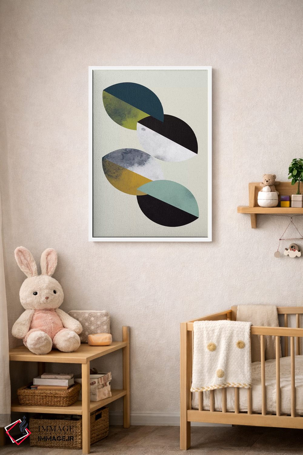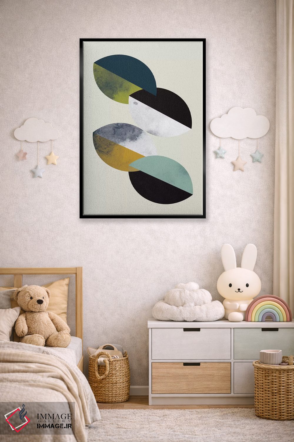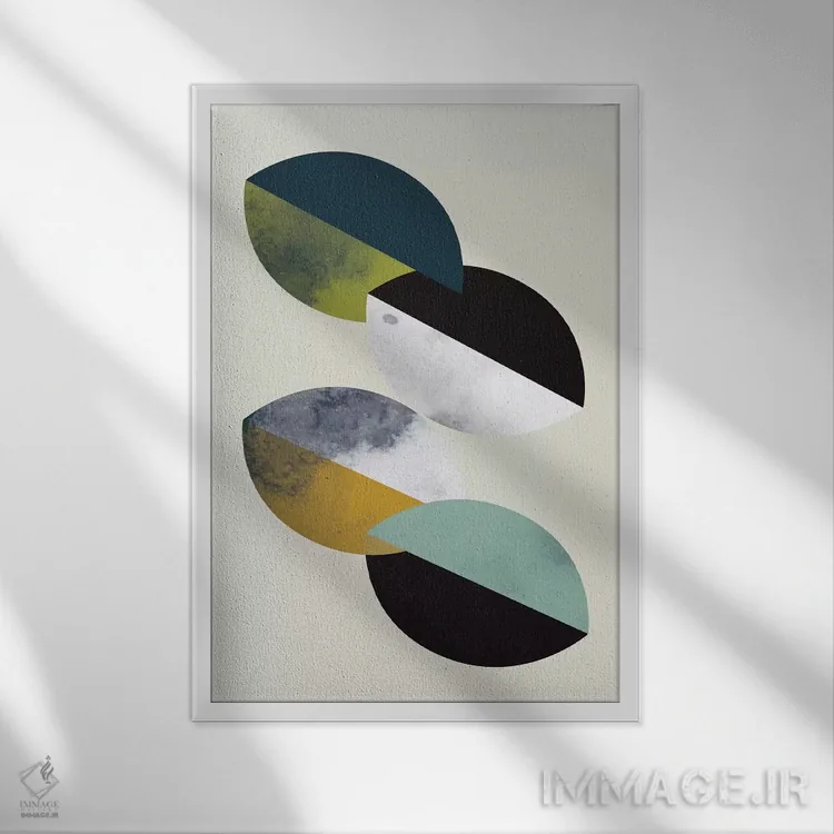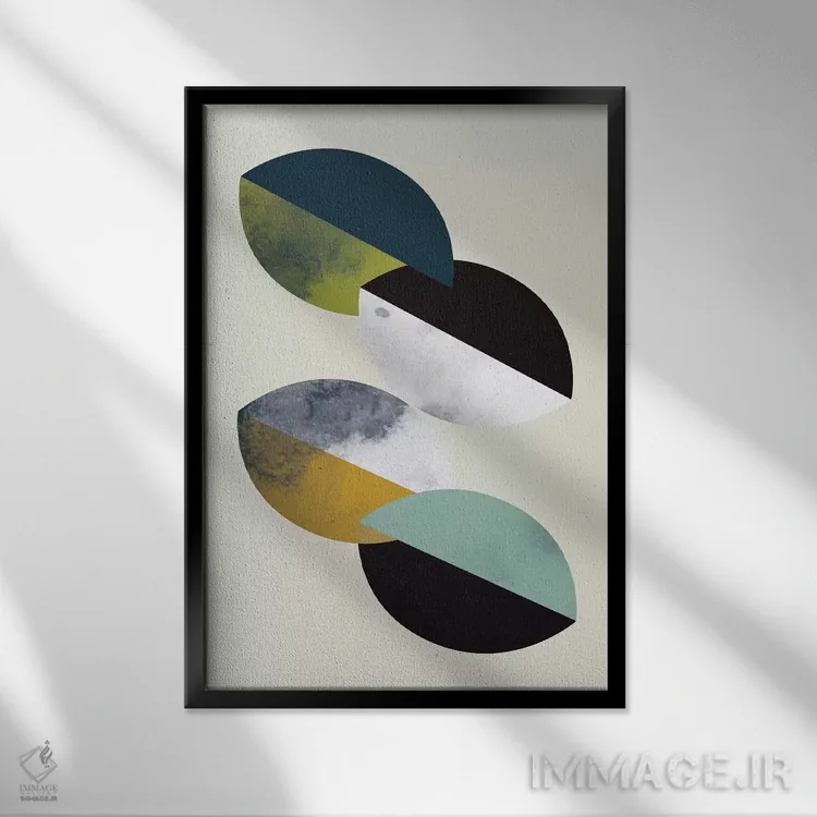 تابلو مینیمال "بشقاب ها" اثر فلت اول - نمای قاب‌دار مشکی
