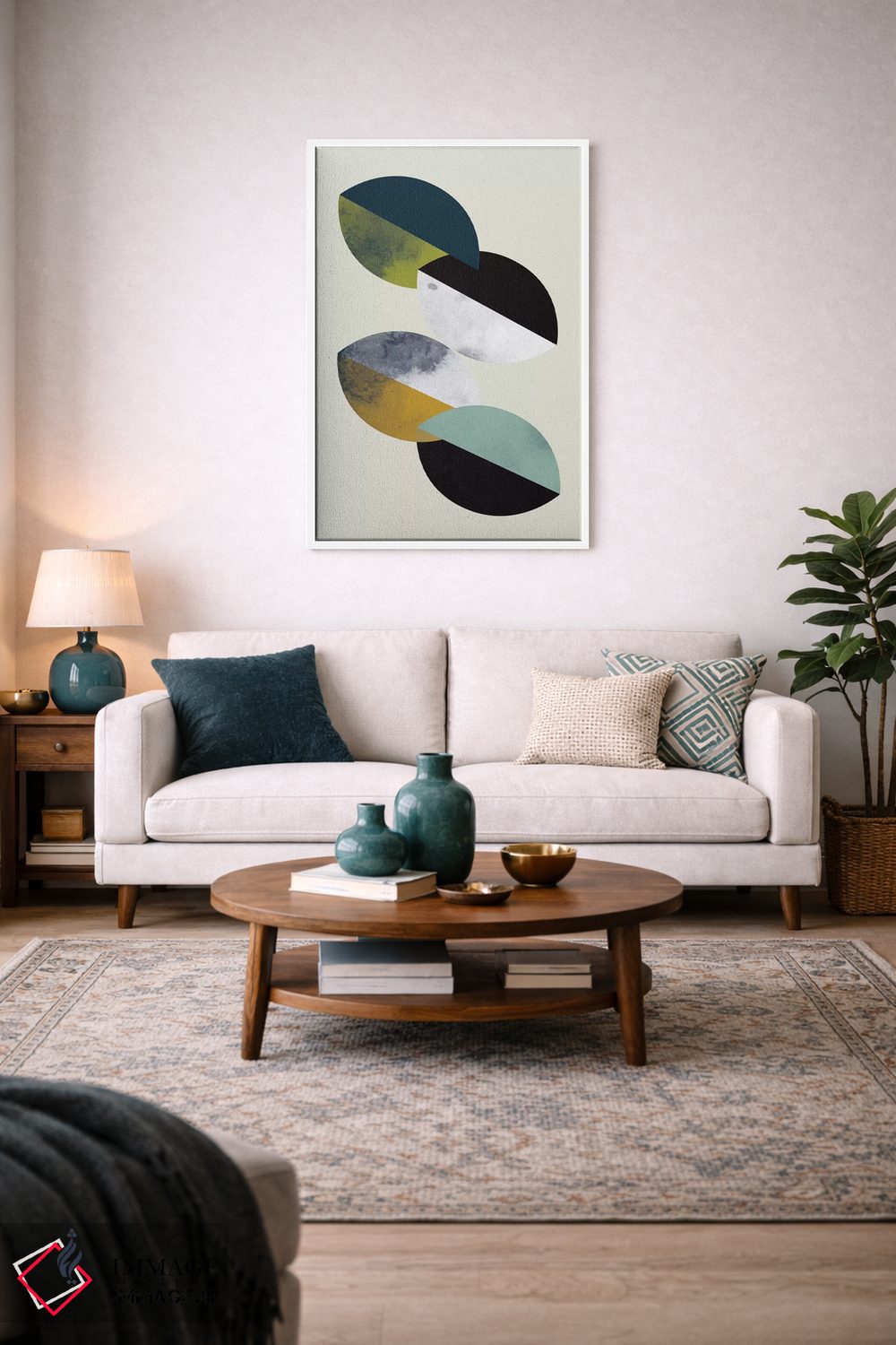 تابلو مینیمال "بشقاب ها" اثر فلت اول - نمای قاب‌دار سفید
