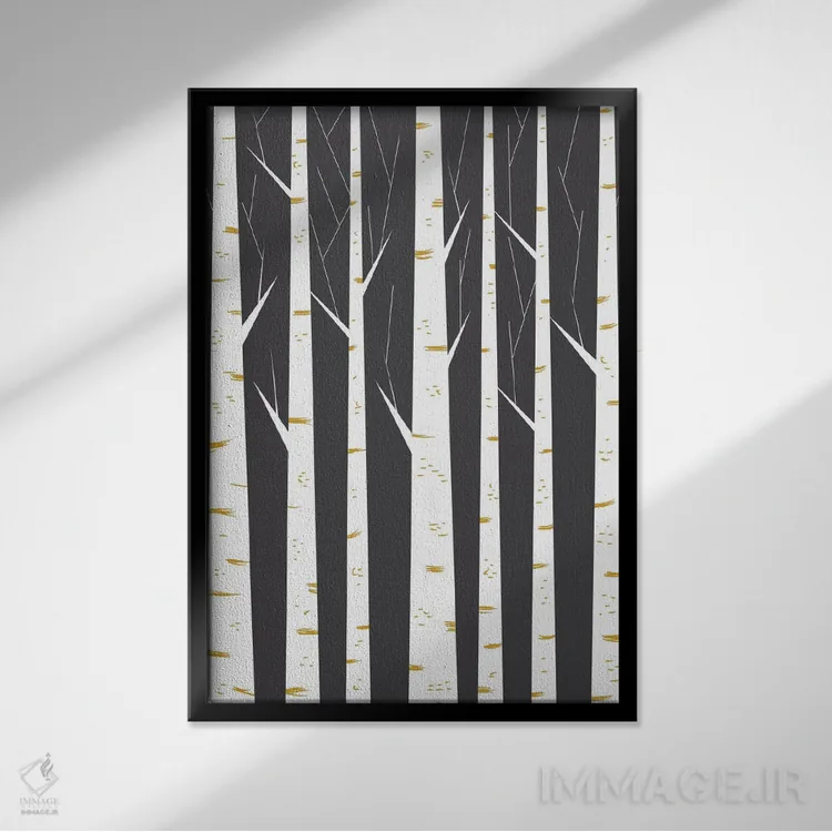 تابلو مینیمال "جنگل راش" اثر فلت اول - نمای قاب‌دار مشکی