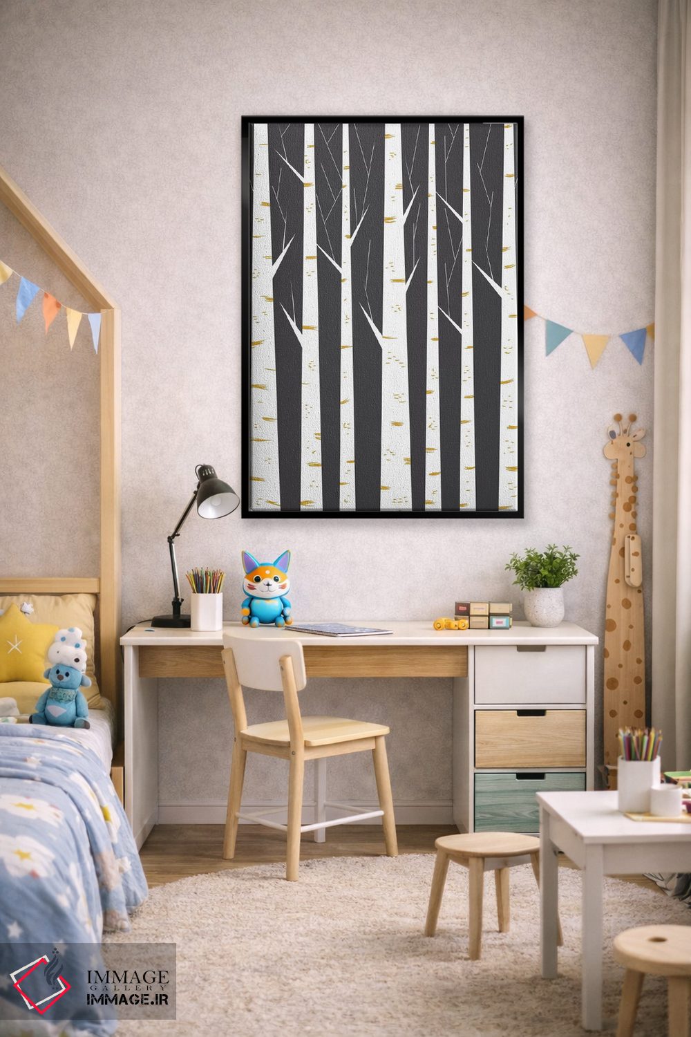 تابلو مینیمال "جنگل راش" اثر فلت اول - نمای روبه‌رو روی دیوار