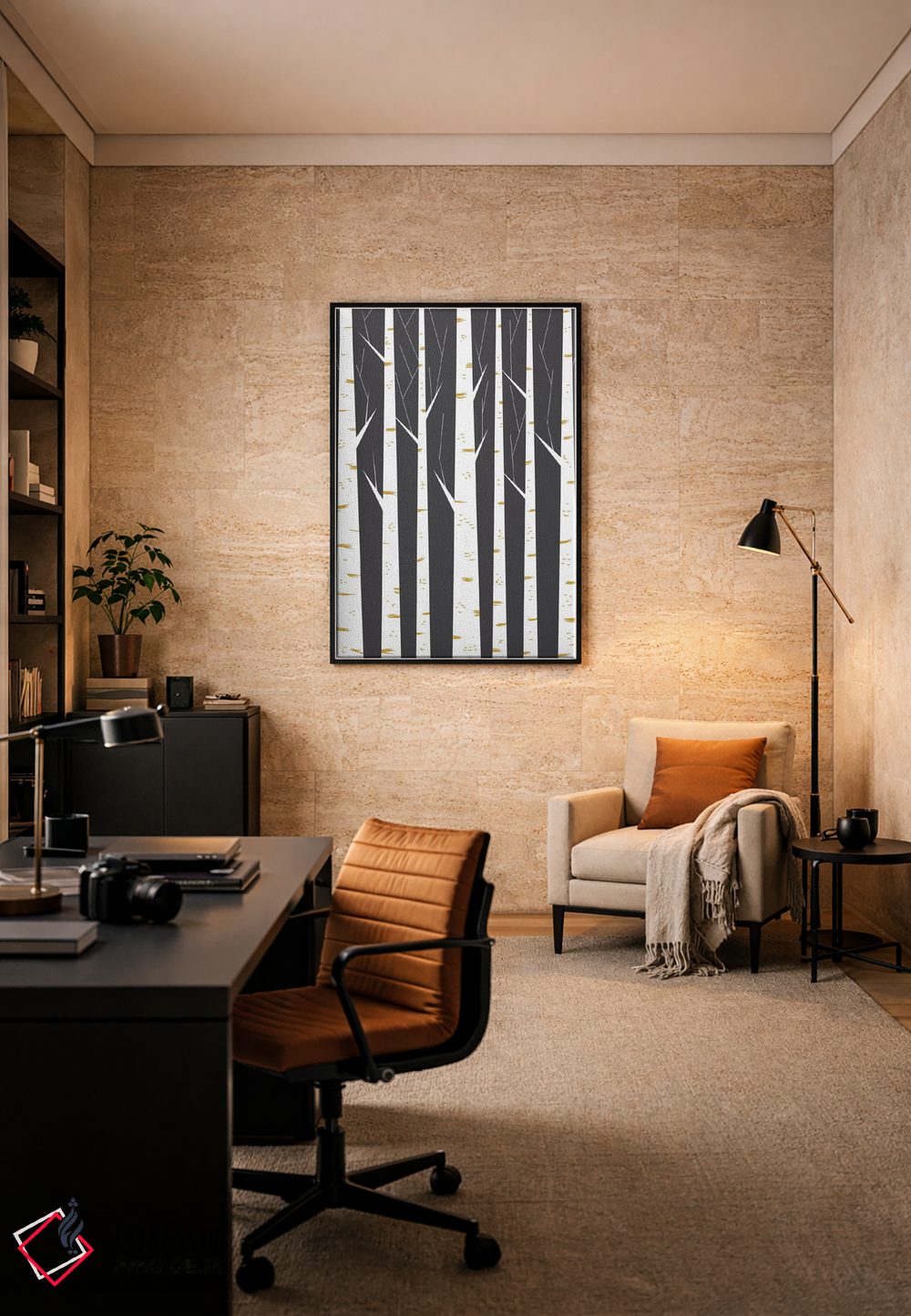 تابلو مینیمال "جنگل راش" اثر فلت اول - نمای پرسپکتیو محصول