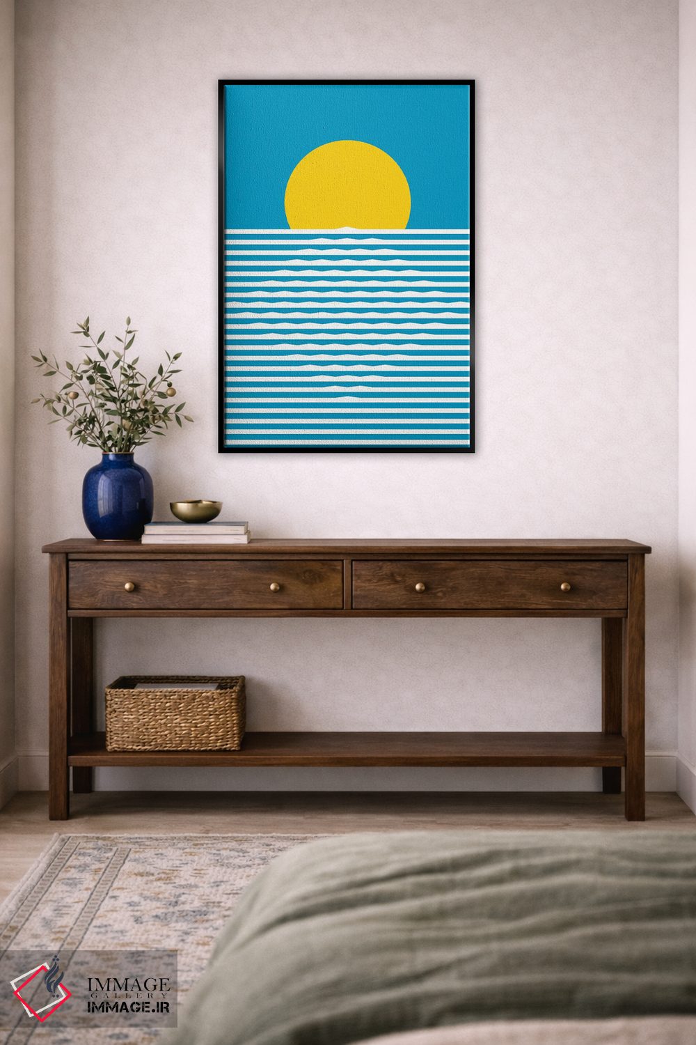 براساس پالت ترکیبی اثر، قاب تیک گرم (چوبی) پیشنهاد اول است و مشکی مات (فریم متوسط) مکمل. برای سفارشهای پروژهای با ابعاد و قابهای اختصاصی با ایماژ در تماس باشید.