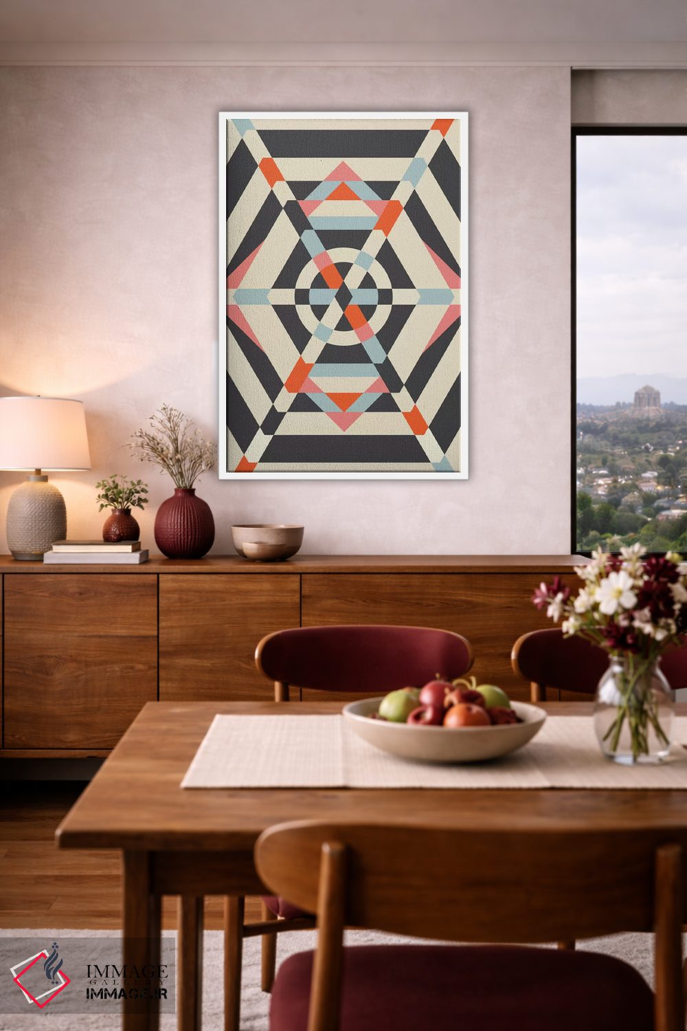 براساس پالت گرم اثر، قاب تیک گرم (چوبی) پیشنهاد اول است و مشکی مات (فریم متوسط) مکمل. برای سفارشهای پروژهای با ابعاد و قابهای اختصاصی با ایماژ در تماس باشید.