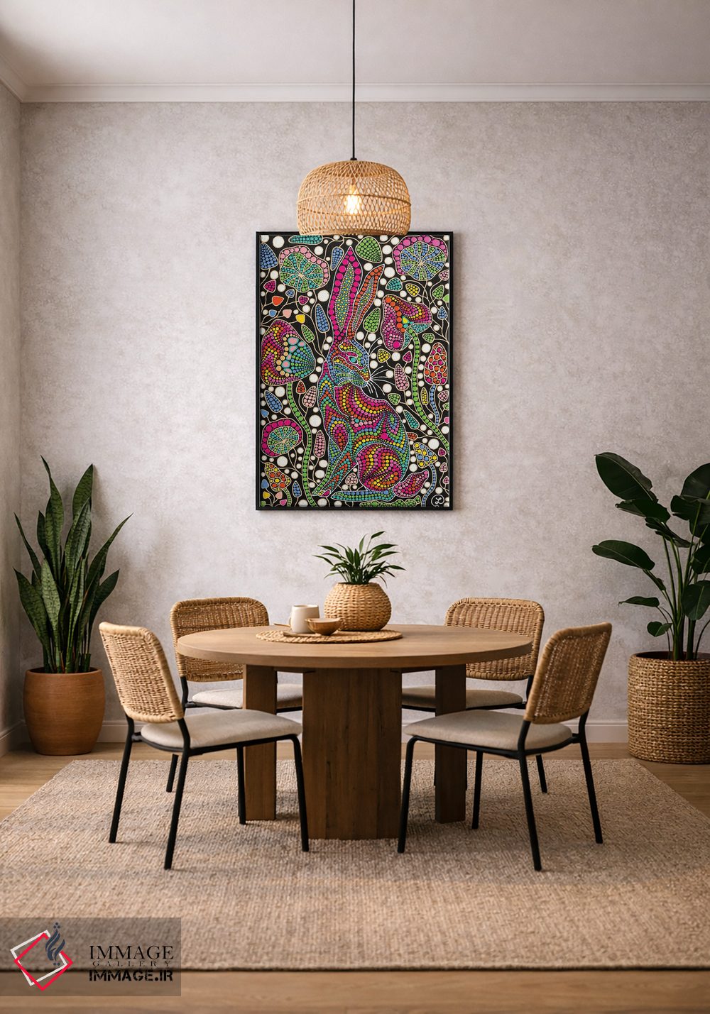 بوم گالری ایماژ نسخهی چیدماناتیوِ گالریپسند از یک اثر هنری است؛ روی کنواس بدون اسید با بافت ظریف و یکنواخت با اجرای چاپ هنری جیکلی (Giclée) برای آرتپرینتهای جدی با رنگدانههای آرشیوی و سیستم رنگ دقیق؛ حس نهایی نزدیکتر به ارائهی گالریوار است؛ نه صرفاً یک تصویر. سفارشیسازی و آمادهسازی تمیز باعث میشود اثر روی دیوار مرتب و حرفهای بنشیند.