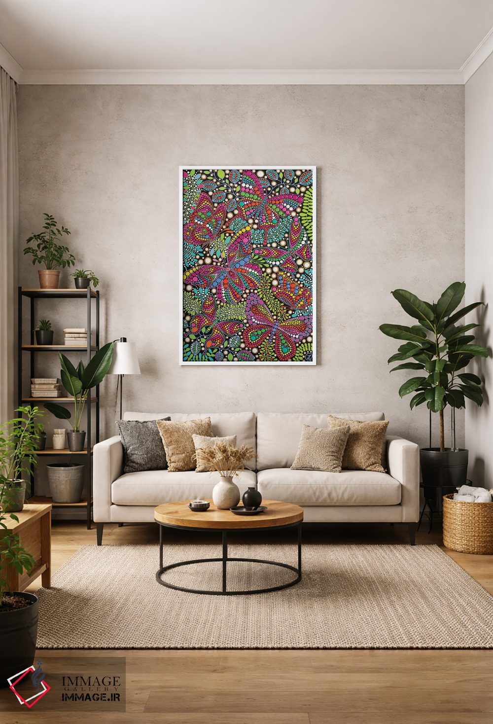 تابلو دکوراتیو "پروانه" اثر اکسانا لازاری - نمای روبه‌رو روی دیوار