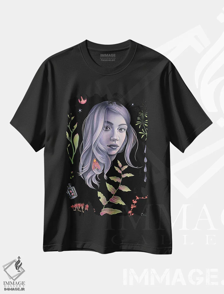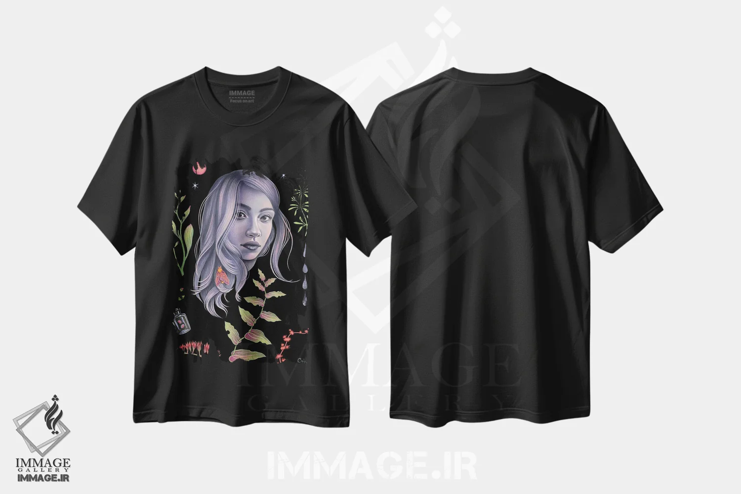 تی شرت هنری «طرح گیاهی سایه نما»؛ تلفیق چهره زن و نمادهای عرفانی