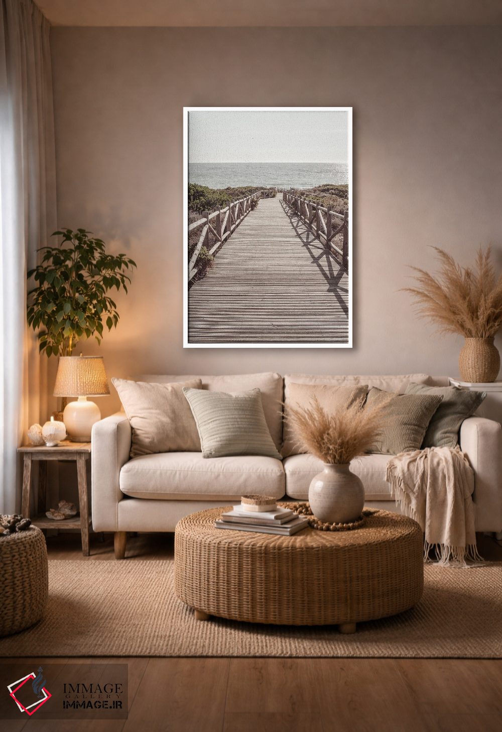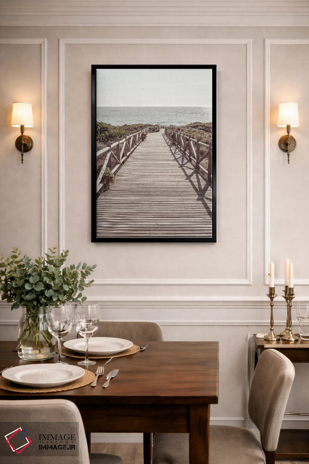 بوم گالری ایماژ طوری طراحی شده که اثر روی دیوار «پرداختشده» و حرفهای دیده شود—نه پرزرقوبرقِ بیپایه؛ بلکه دقیق و خوشپرداخت. بافت ظریف کنواس باعث میشود حس اثر هنری را در نگاه نزدیک نگه میدارد. ارائهی آماده نصب باعث میشود برای یک ارائهی حرفهای ضروری است بدون اغراق؛ فقط دقیقتر. حاصل کار، یک تابلو خوشنشین است که هم از دور اثرگذار است و هم از نزدیک خوشخوان؛ اگر فضا مینیمال است، همین پرداخت تمیز کافی است.