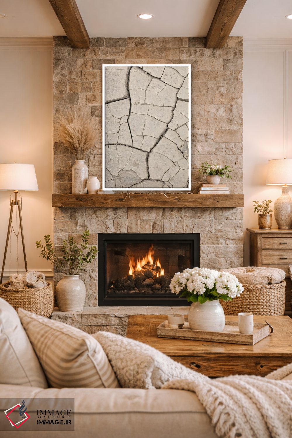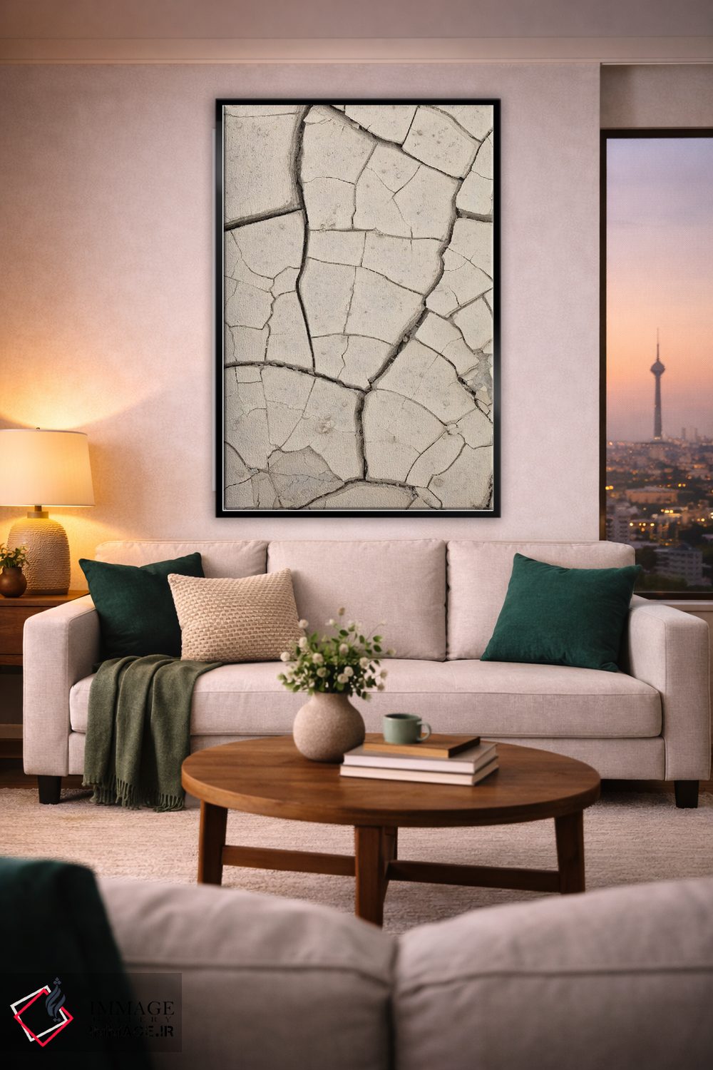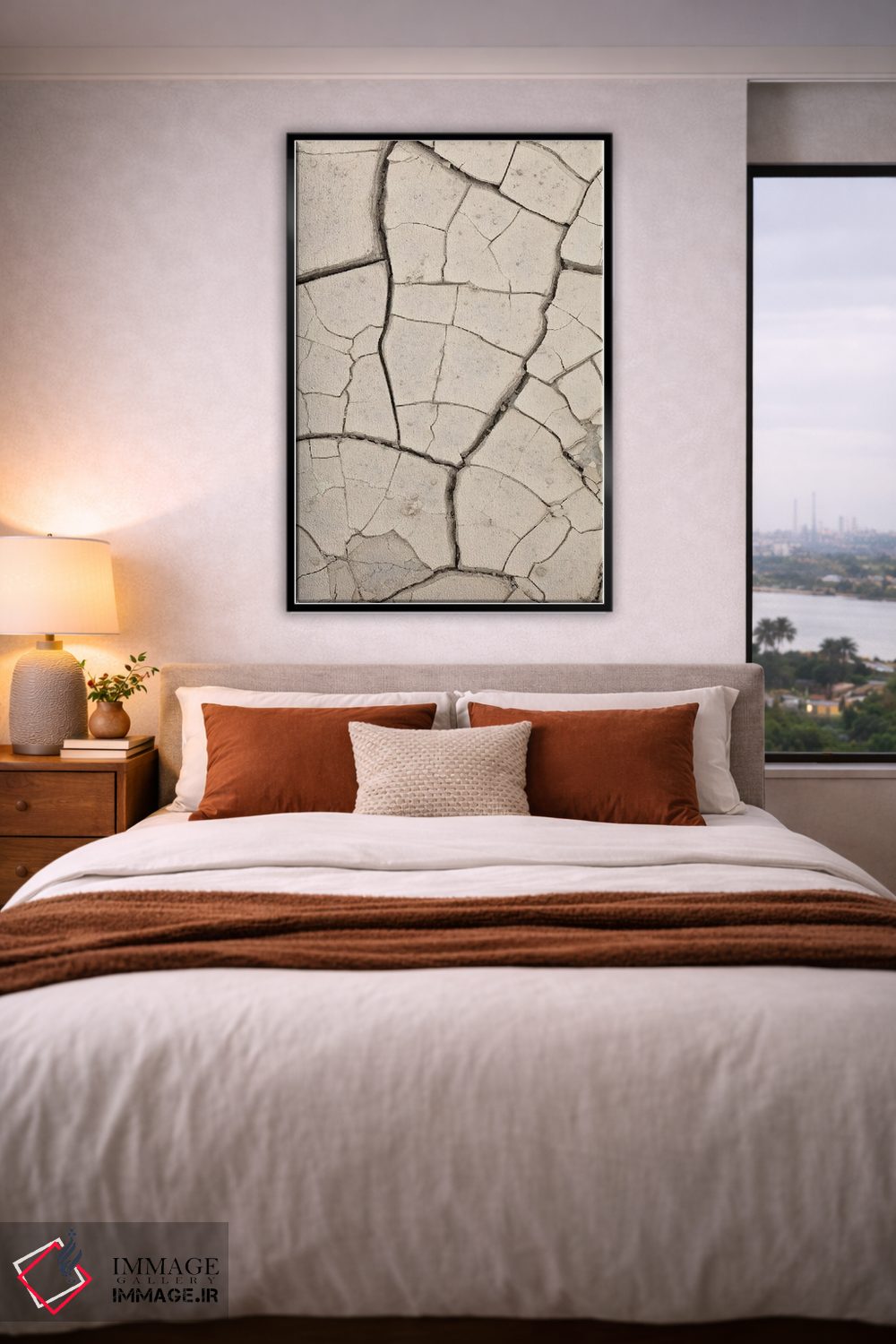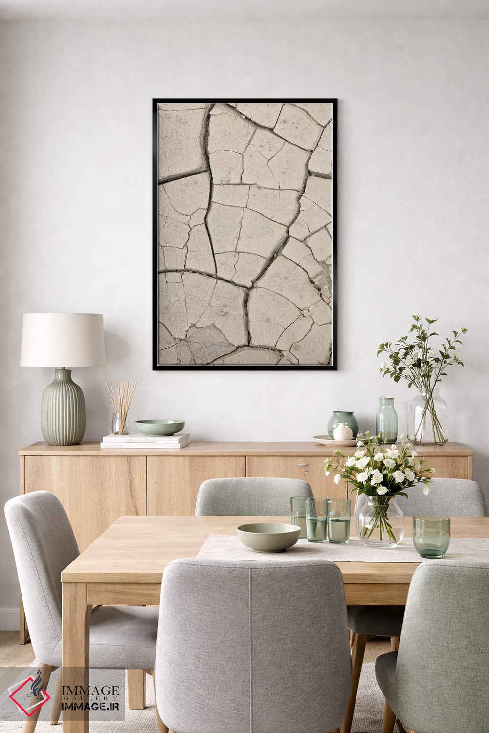 براساس پالت خنثی اثر، قاب بلوط روشن (چوبی) پیشنهاد اول است و استخوانی ملایم مکمل. برای سفارشهای پروژهای با ابعاد و قابهای اختصاصی با ایماژ در تماس باشید.