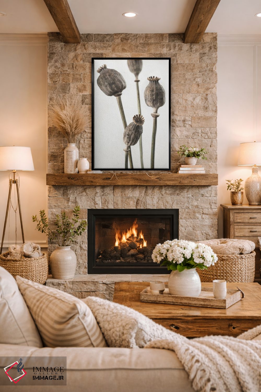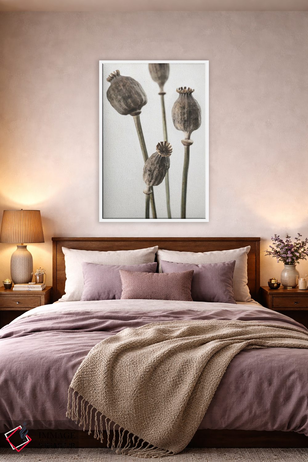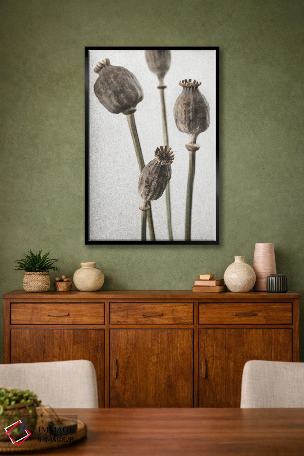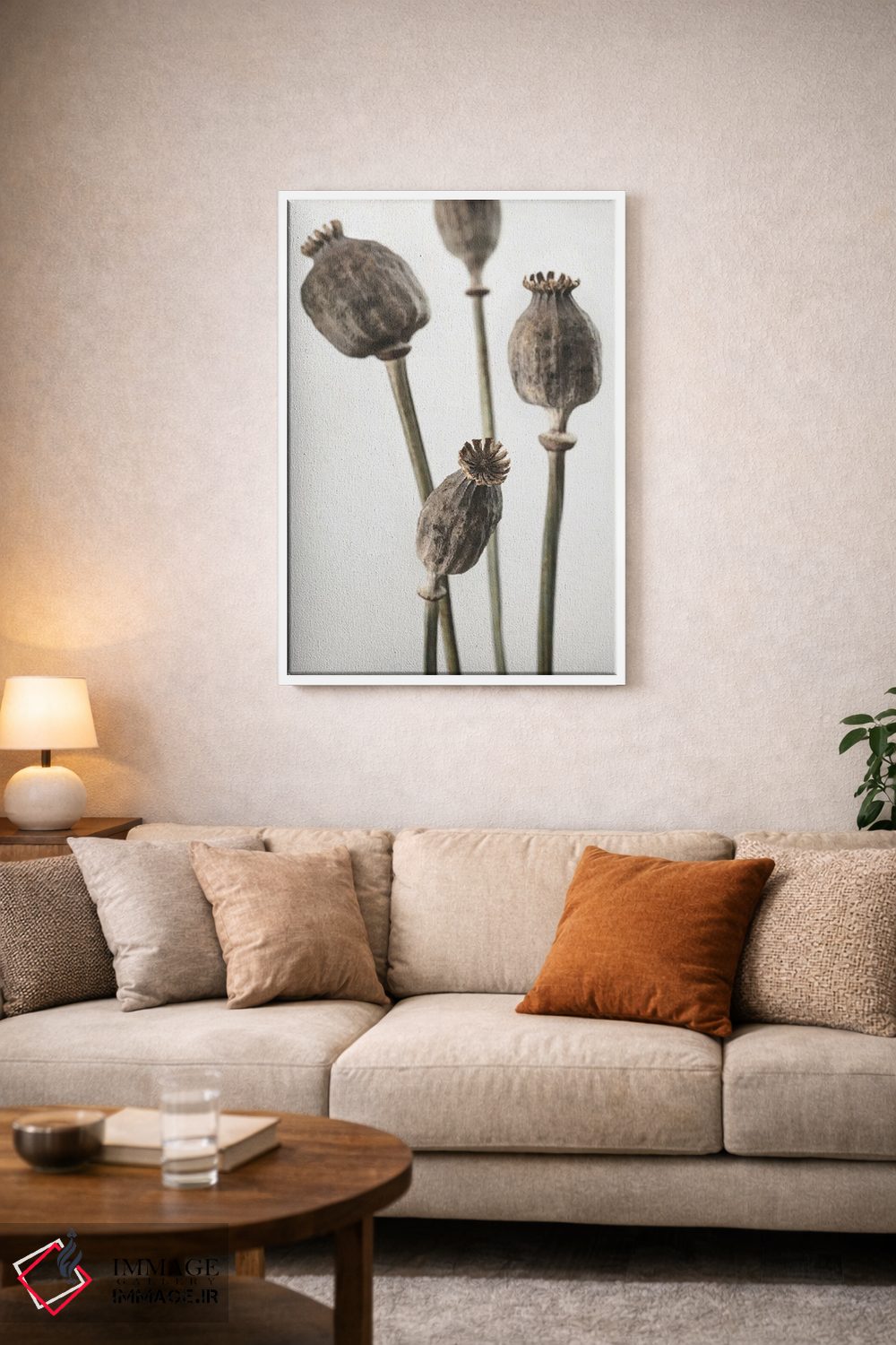 براساس پالت خنثی اثر، قاب بلوط روشن (چوبی) پیشنهاد اول است و استخوانی ملایم مکمل. برای سفارشهای پروژهای با ابعاد و قابهای اختصاصی با ایماژ در تماس باشید.