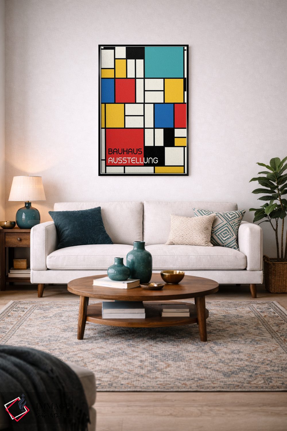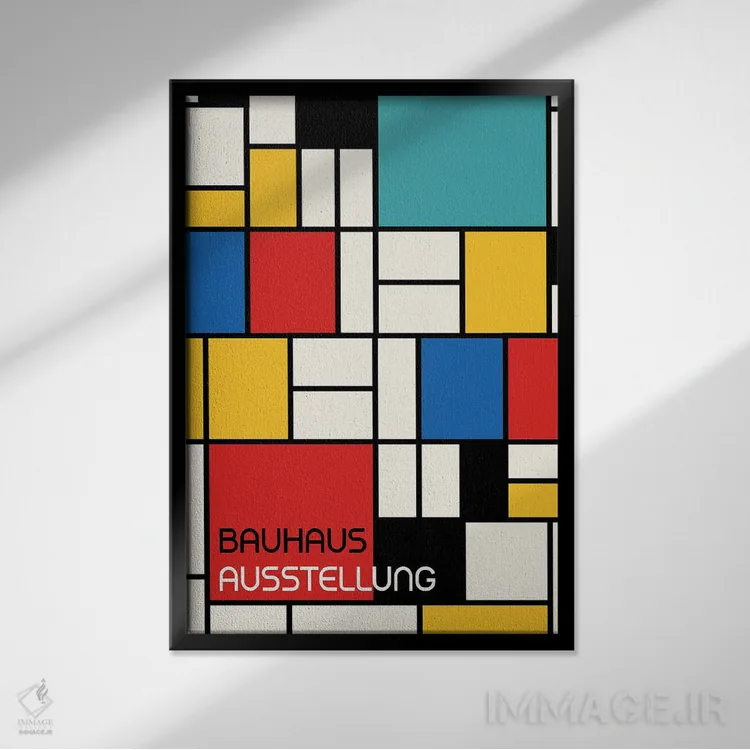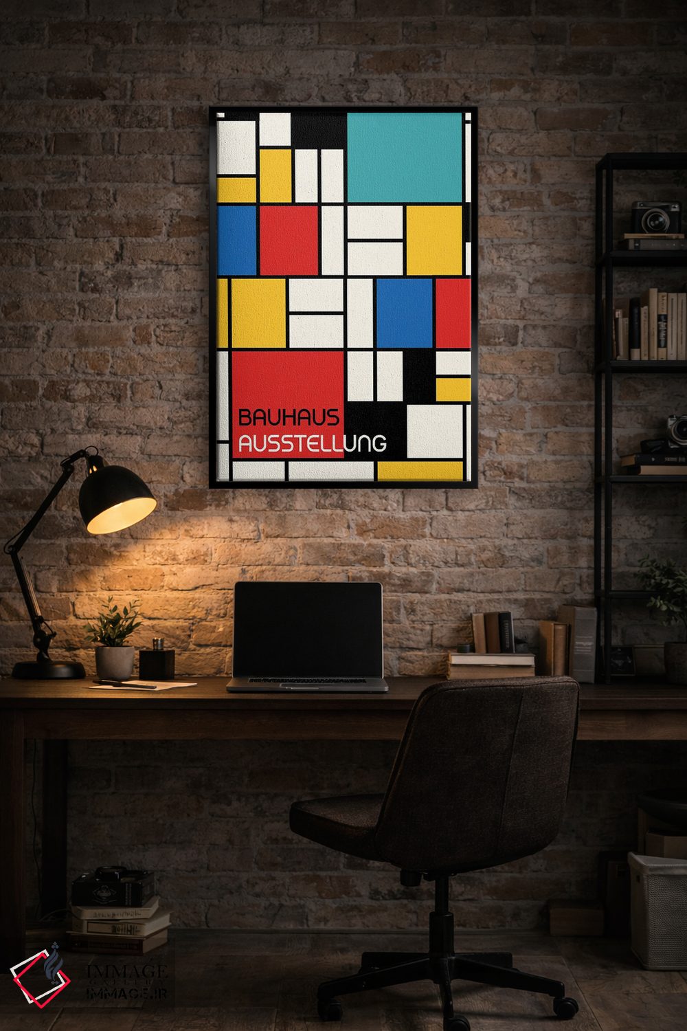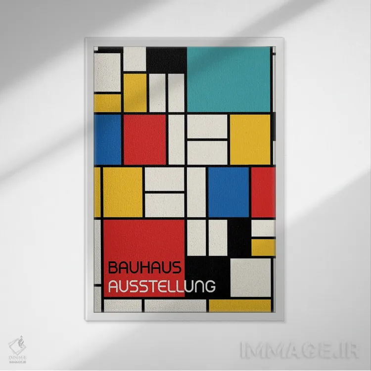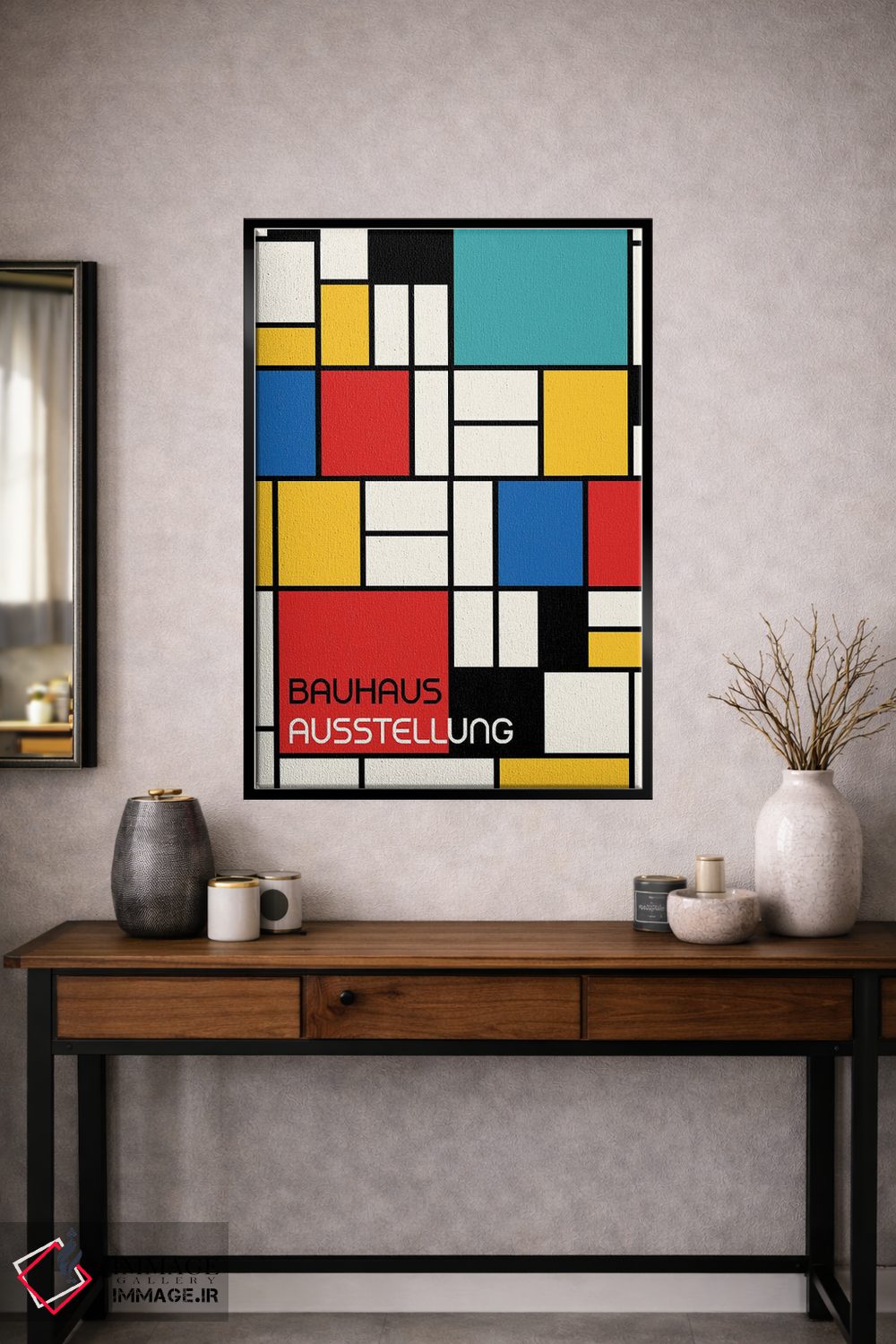 در «طرح هندسی باوهاوس رترو IV» اثرِ «رتردروم»، رنگ و فرم نقش اصلی را دارند؛ انتخابی خوب برای فضاهای امروزی و دیوارهای مینیمال.