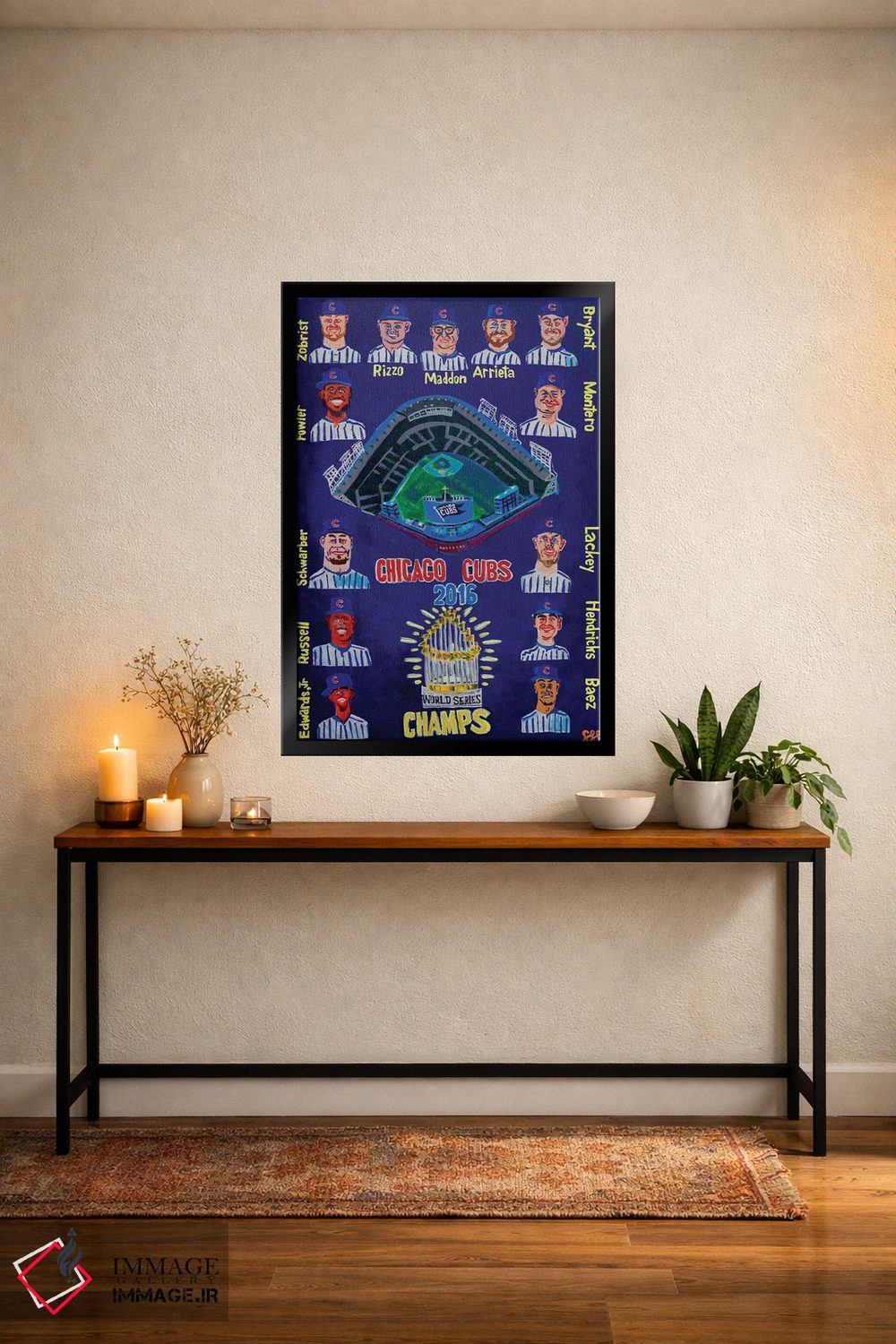 «کابز ۲۰۱۶ (نام تیم بیسبال)» اثرِ «استیو اسپنسر» با حالوهوای دکور معاصر و موضوعِ این اثر، برای نشیمنهای امروزی و چیدمانهای ساده انتخابی دقیق است.