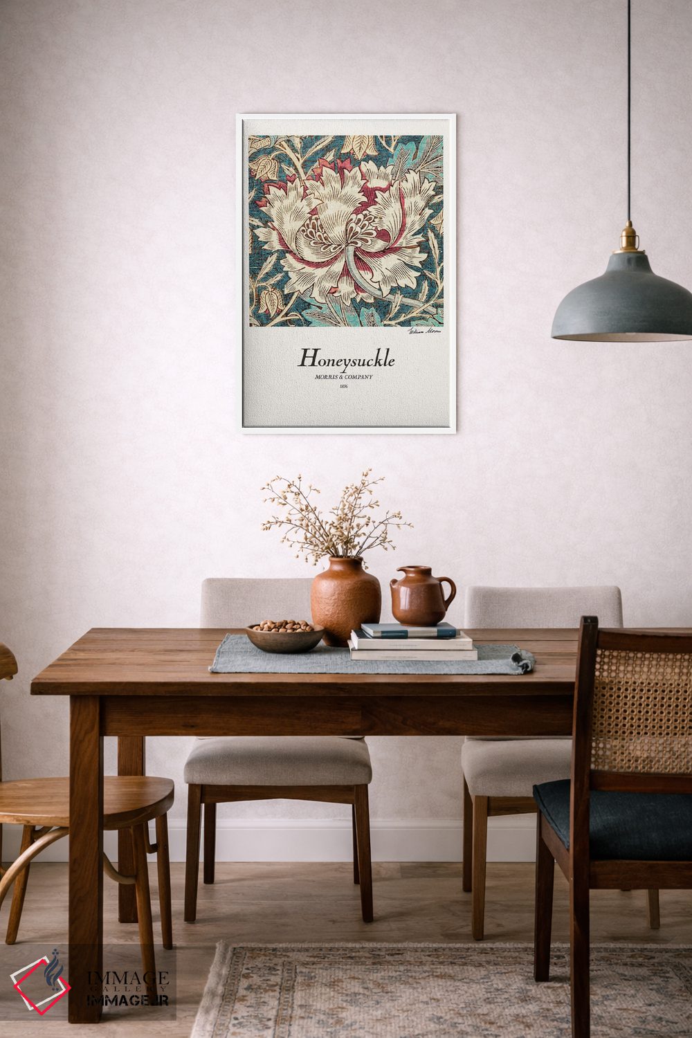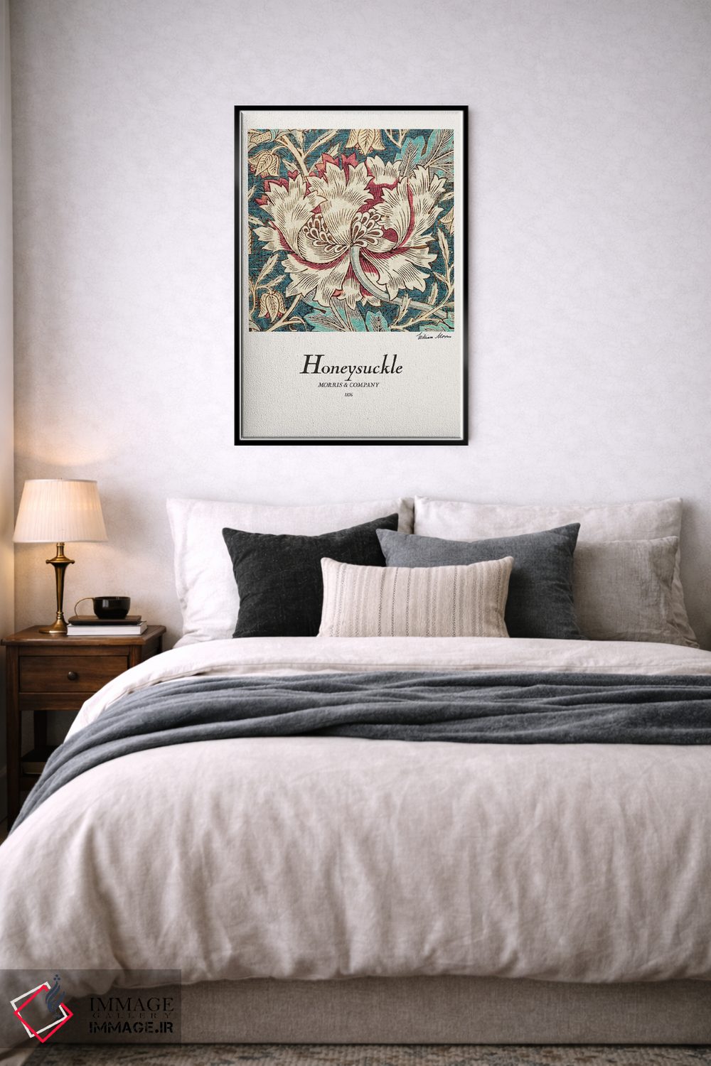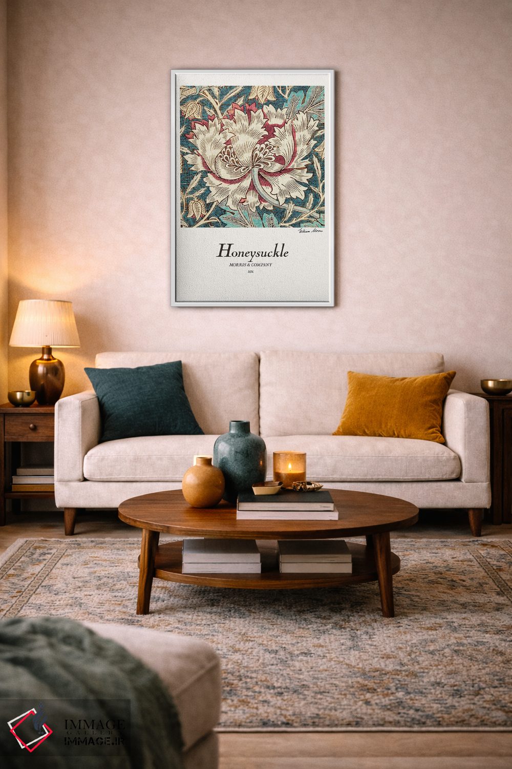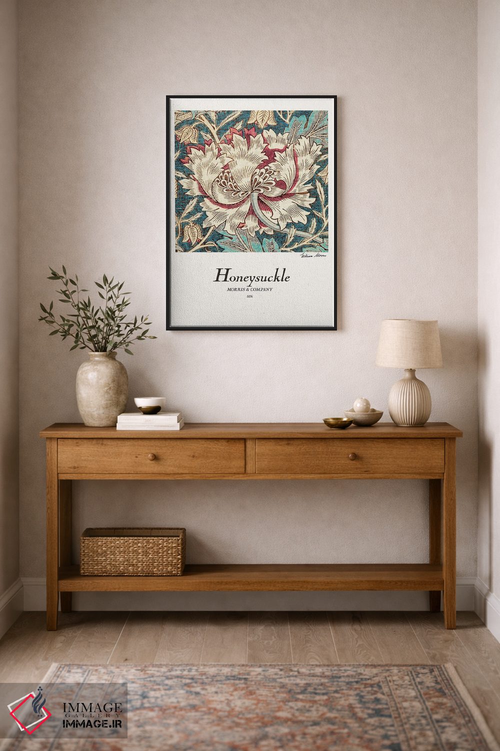 اگر دوست دارید دیوار روشنتر و آرامتر دیده شود، «عسلک (نوعی گیاه گلدار)» اثرِ «ویلیام موریس (طراح و هنرمند بریتانیایی)» به دیوار، روشناییِ ملایم و دلنشین میدهد، برای کنار میز آرایش یا کنسول گزینهٔ مناسبیست. همیشه بهروز میماند و با فصلها خوب کنار میآید.