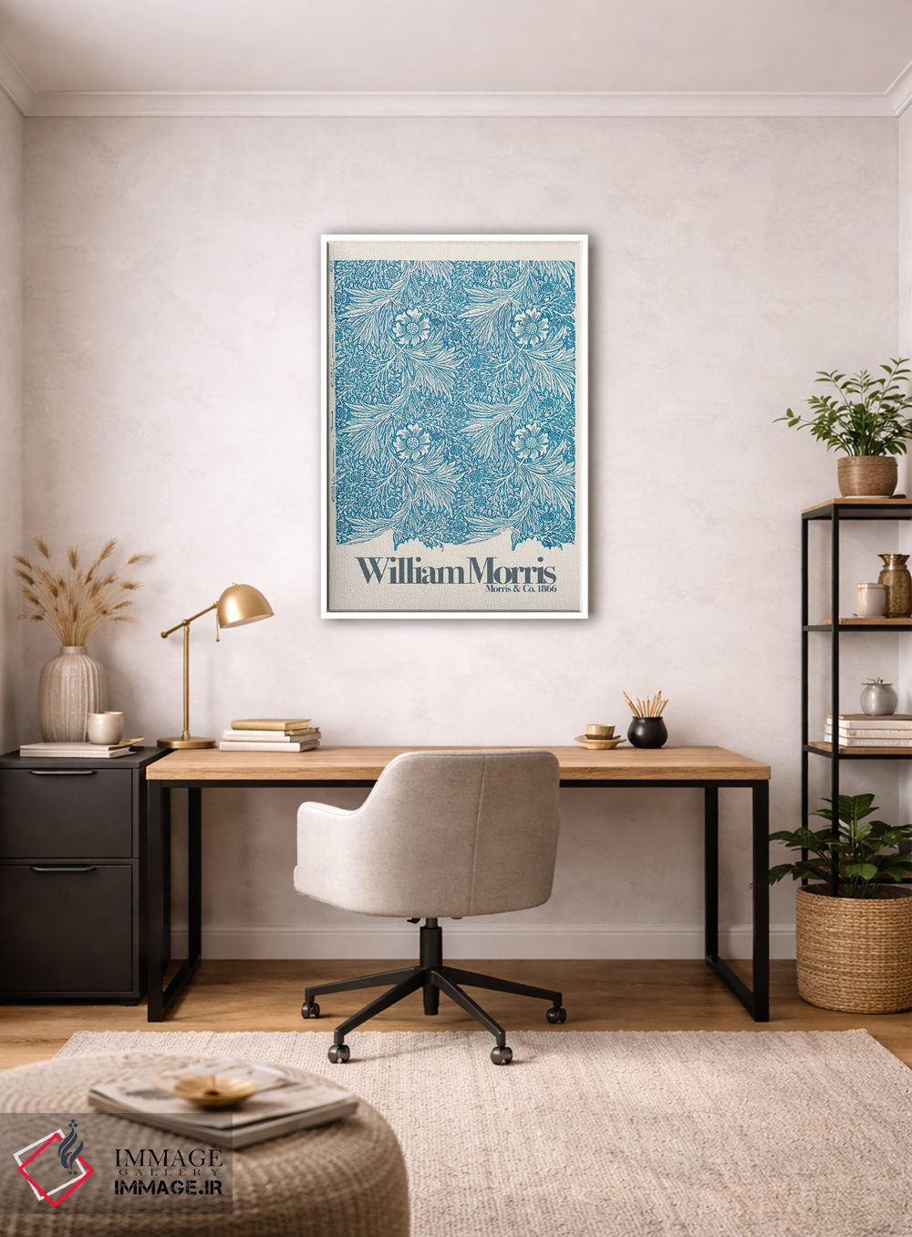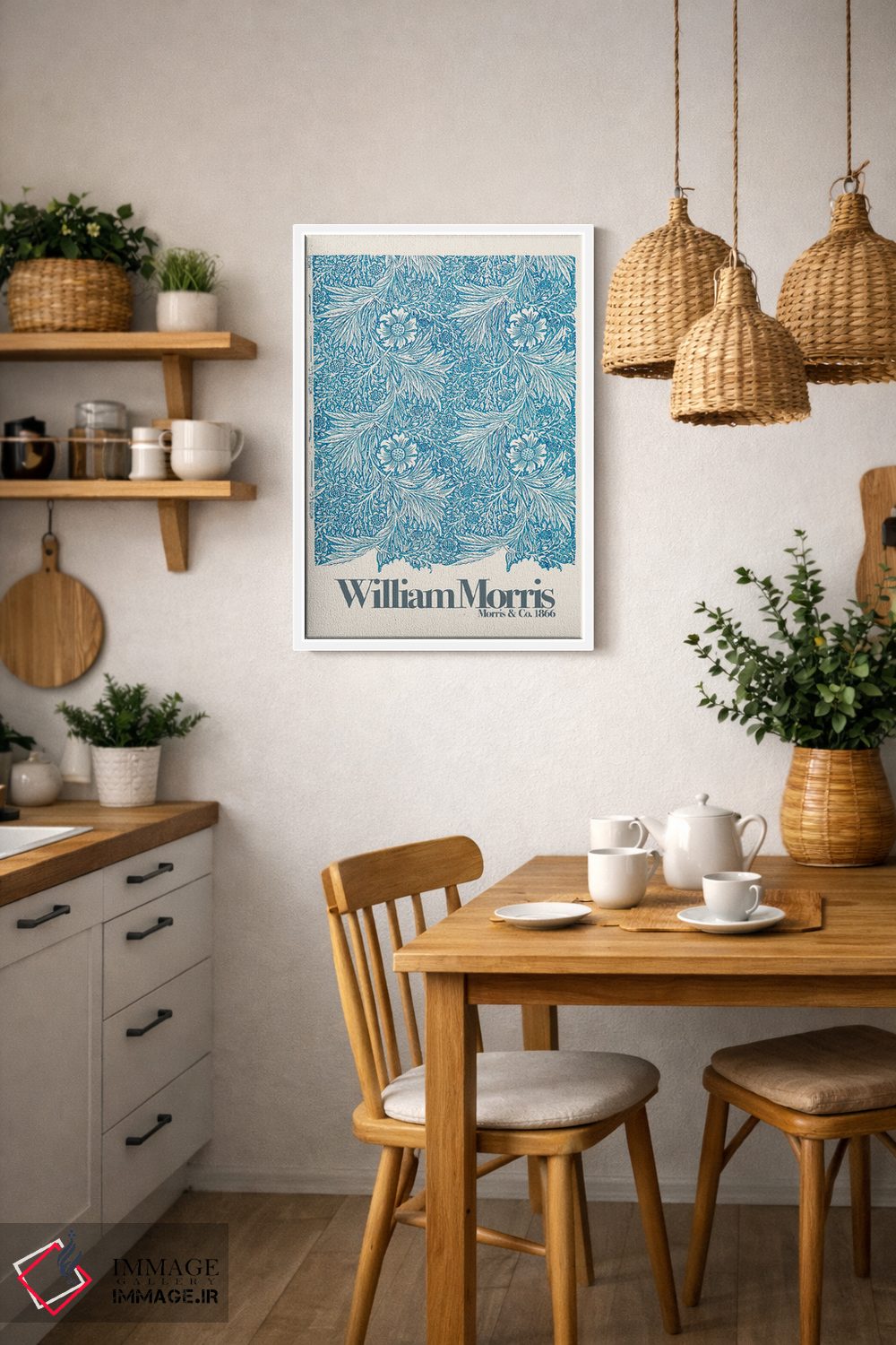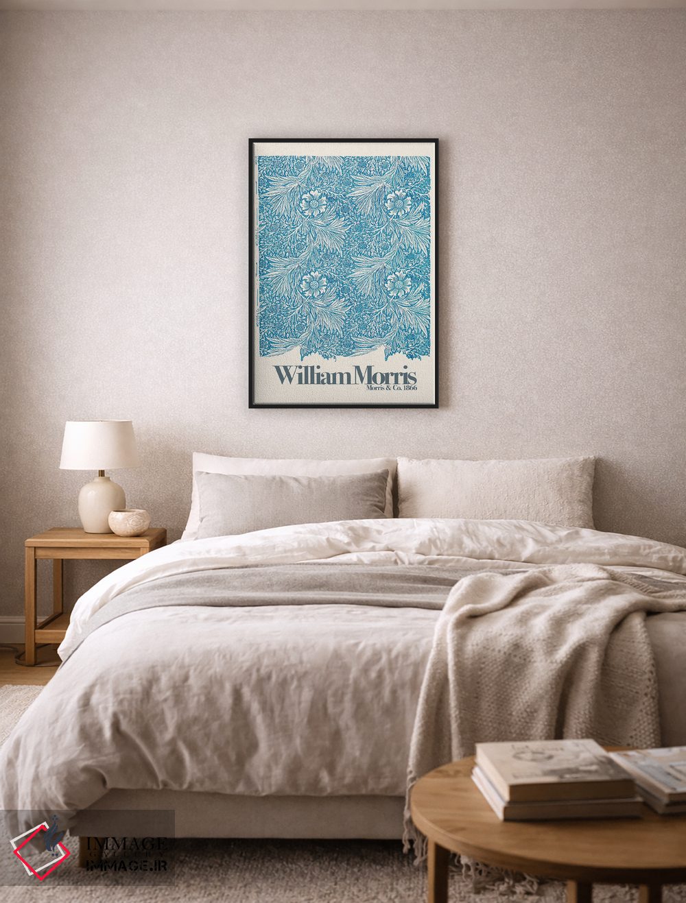 برای اتاق خواب و نشیمنهای آرام، «باغبابونه» اثرِ «ویلیام موریس (طراح و هنرمند بریتانیایی)» مثل یک قطعهٔ دکورِ همیشهبهروز عمل میکند؛ برای هدیه دادن انتخابی خوشسلیقه است. فضا را شلوغ نمیکند؛ فقط لطیفترش میکند.