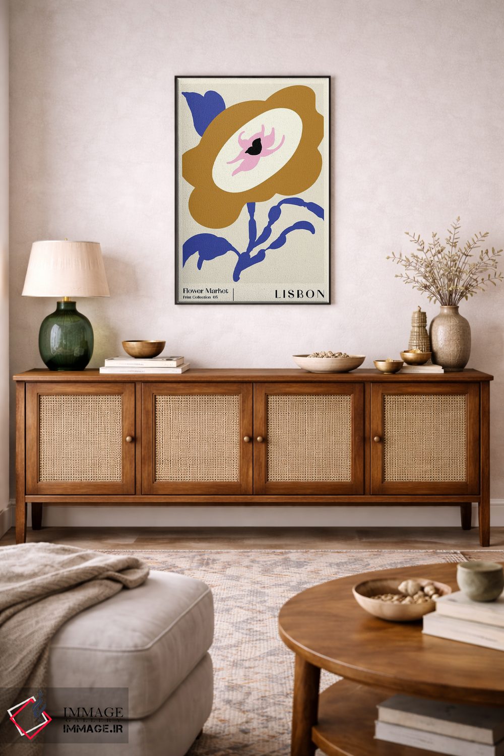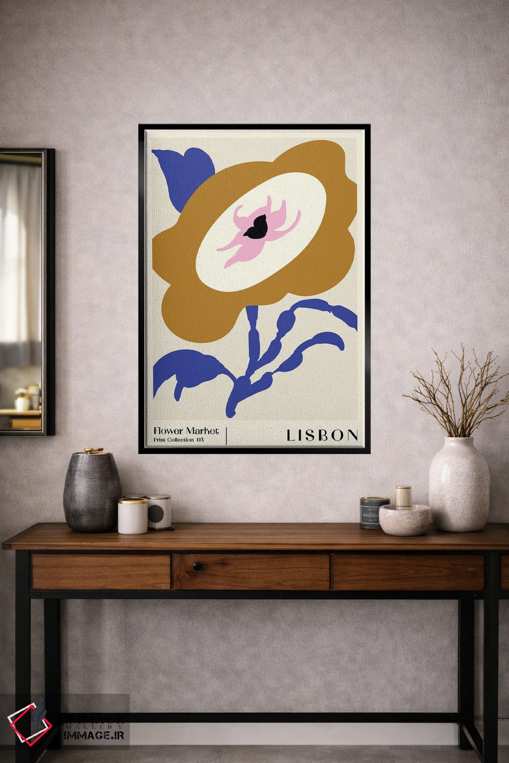 براساس پالت ترکیبی اثر، قاب تیک گرم (چوبی) پیشنهاد اول است و مشکی مات (فریم متوسط) مکمل. برای سفارشهای پروژهای با ابعاد و قابهای اختصاصی با ایماژ در تماس باشید.