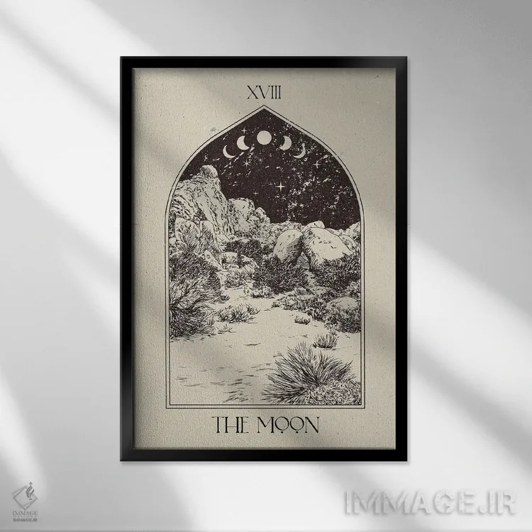 تابلو مینیمال ماه اثر ان کی تی ان - نمای قاب‌دار مشکی