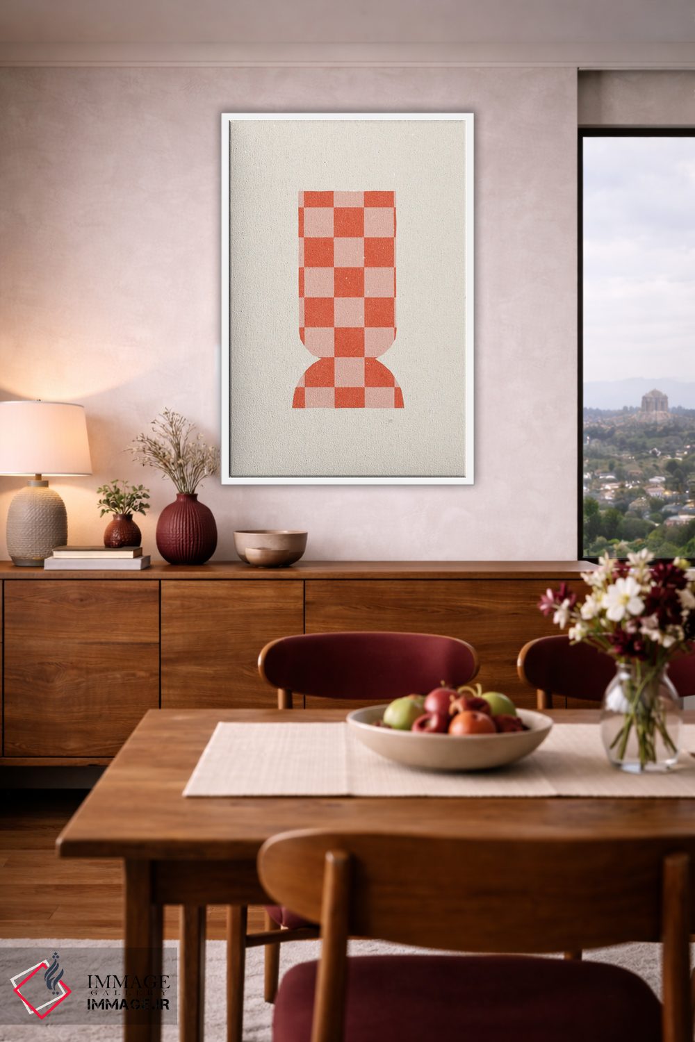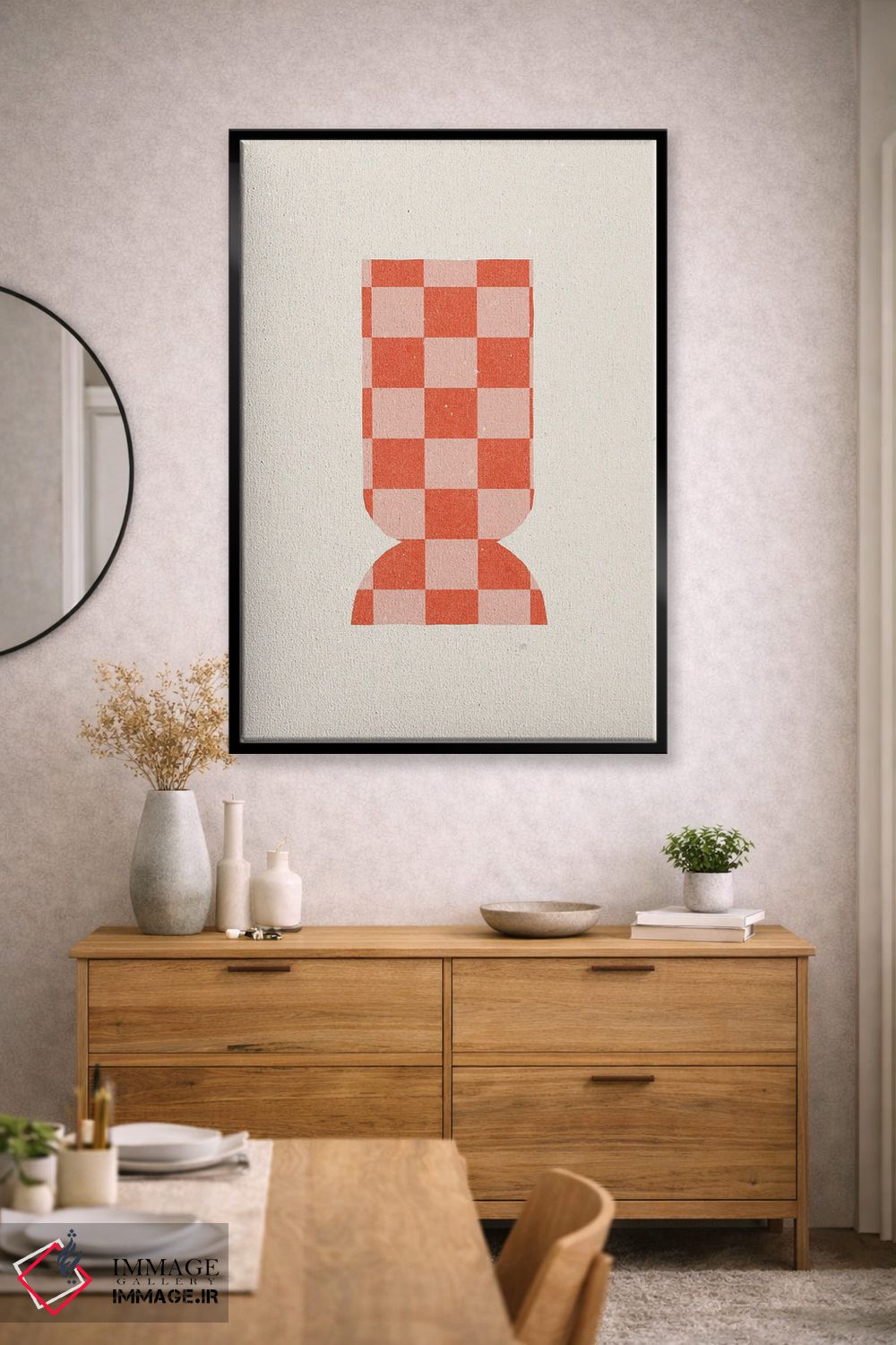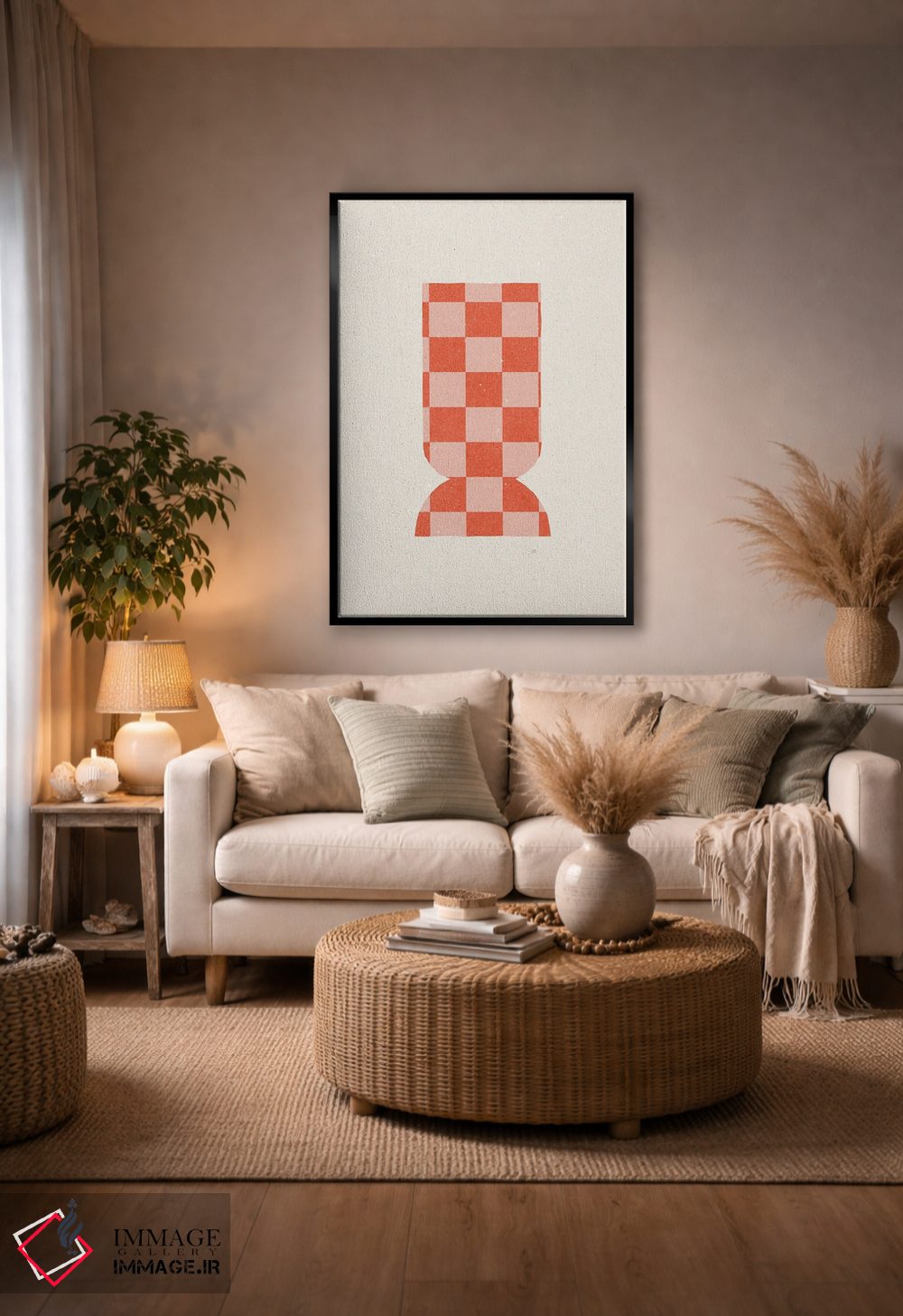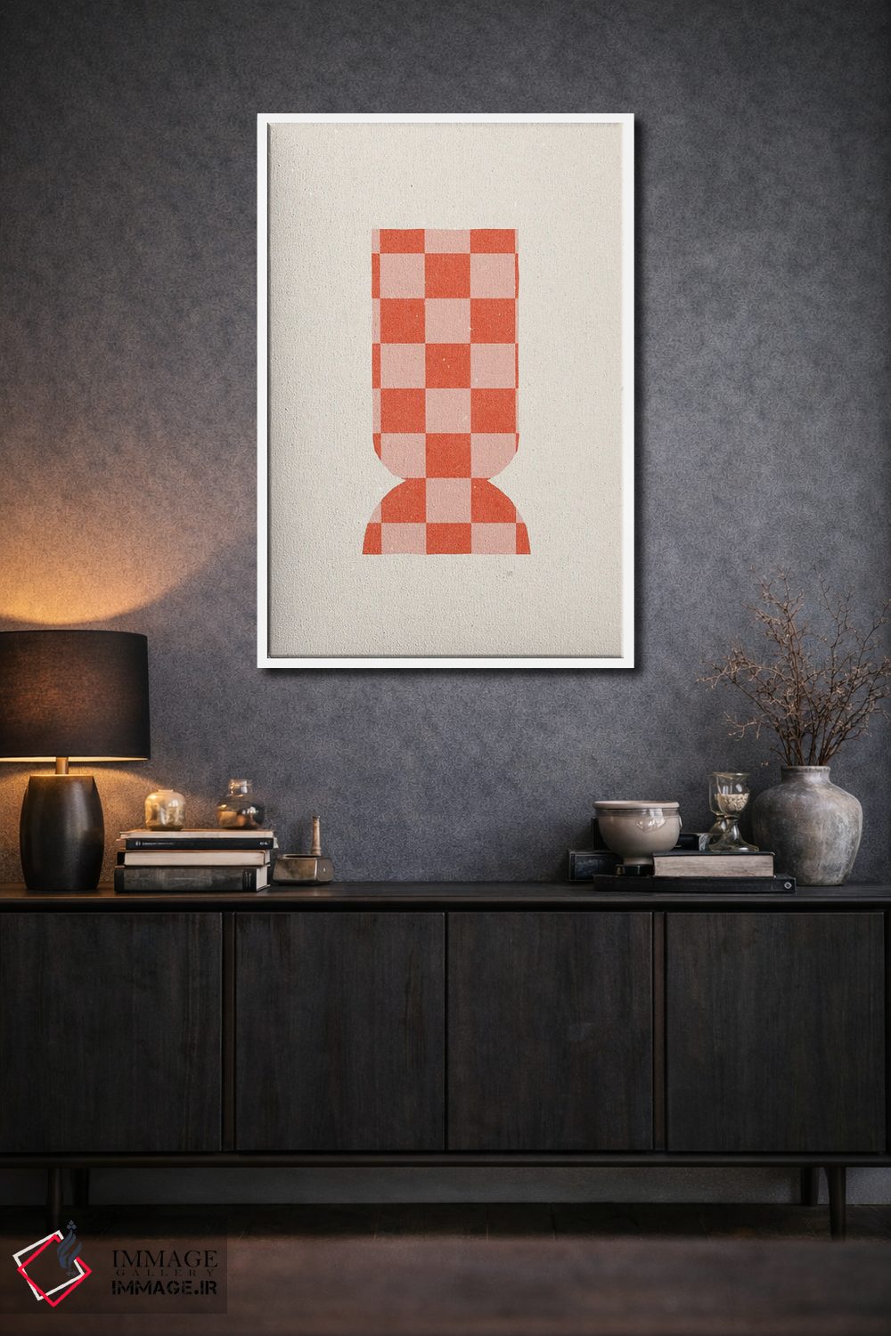 براساس پالت گرم اثر، قاب تیک گرم (چوبی) پیشنهاد اول است و مشکی مات (فریم متوسط) مکمل. برای سفارشهای پروژهای با ابعاد و قابهای اختصاصی با ایماژ در تماس باشید.