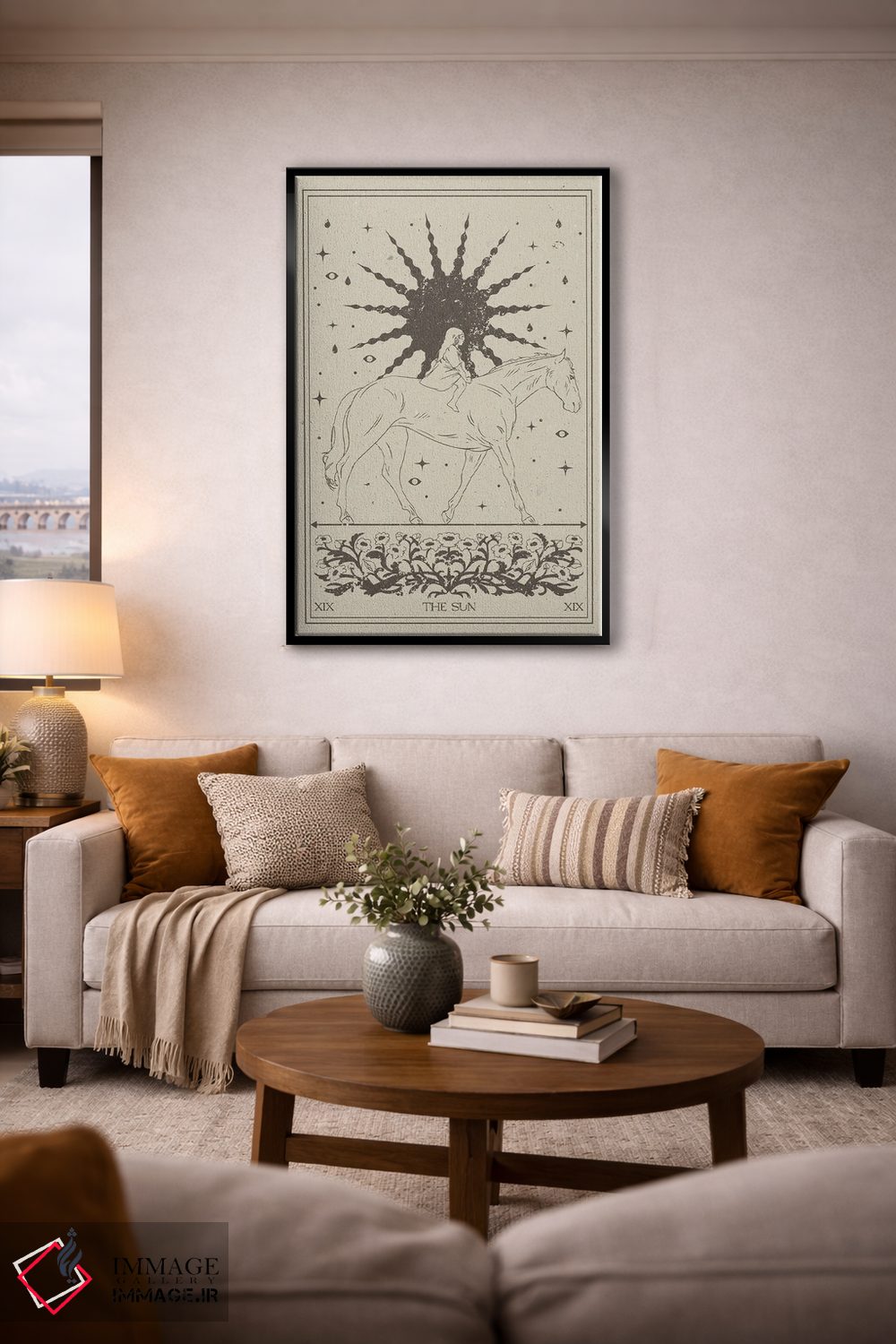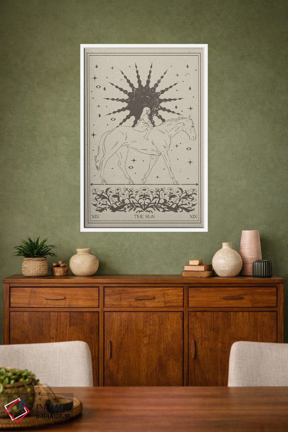 براساس پالت خنثی اثر، قاب بلوط روشن (چوبی) پیشنهاد اول است و استخوانی ملایم مکمل. برای سفارشهای پروژهای با ابعاد و قابهای اختصاصی با ایماژ در تماس باشید.
