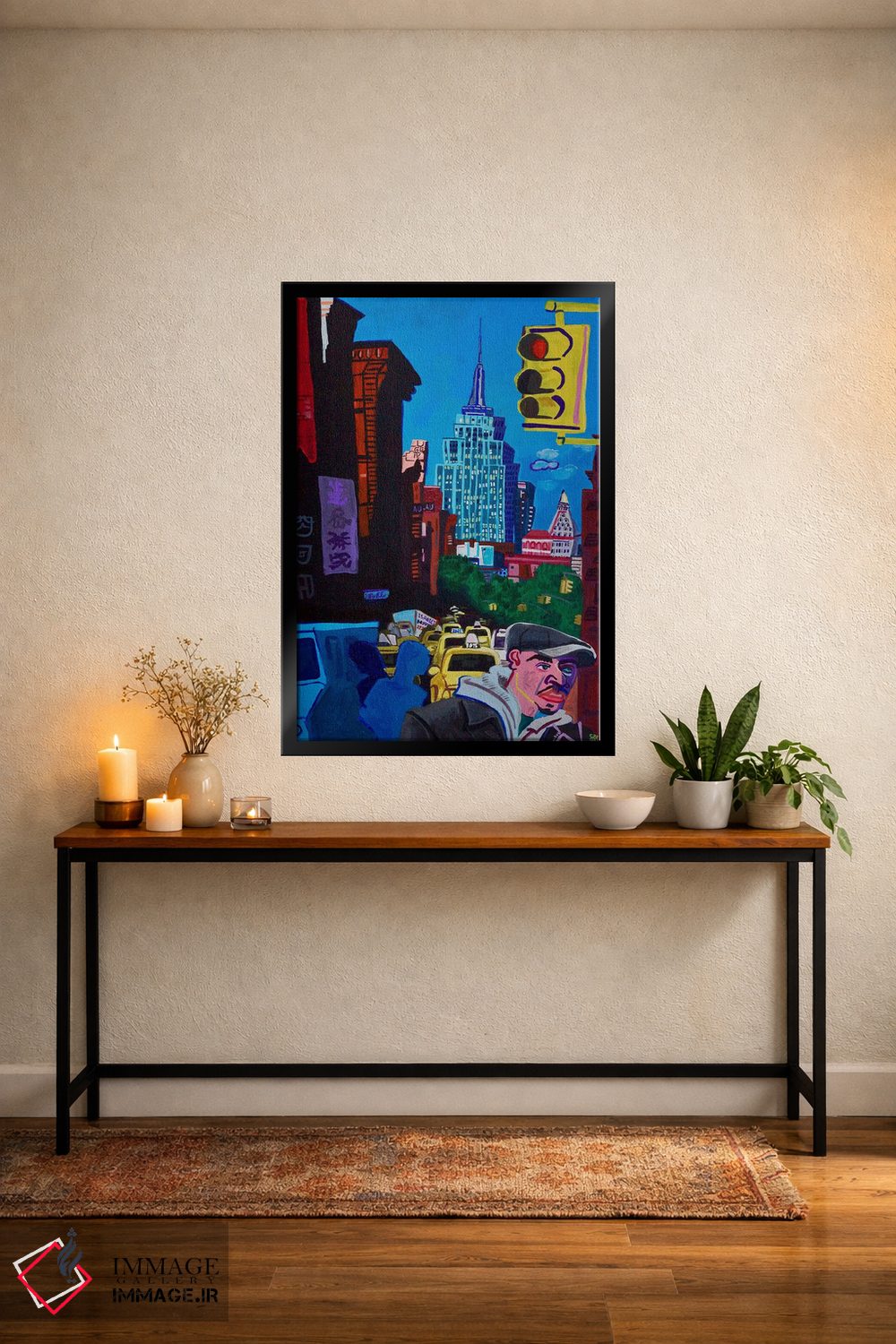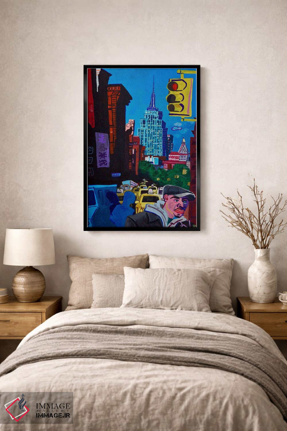 براساس پالت ترکیبی اثر، قاب تیک گرم (چوبی) پیشنهاد اول است و مشکی مات (فریم متوسط) مکمل. برای سفارشهای پروژهای با ابعاد و قابهای اختصاصی با ایماژ در تماس باشید.