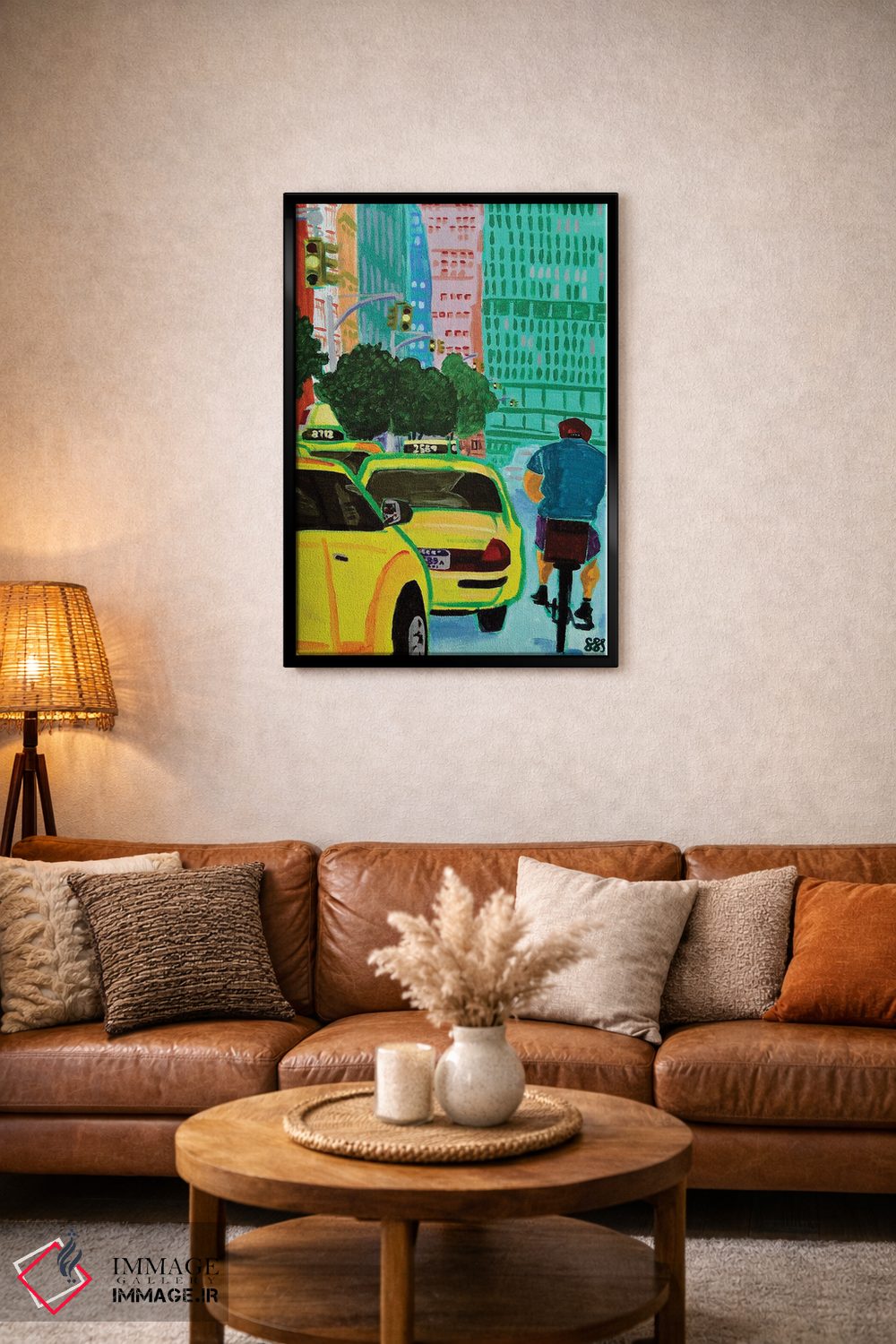 براساس پالت ترکیبی اثر، قاب تیک گرم (چوبی) پیشنهاد اول است و مشکی مات (فریم متوسط) مکمل. برای سفارشهای پروژهای با ابعاد و قابهای اختصاصی با ایماژ در تماس باشید.