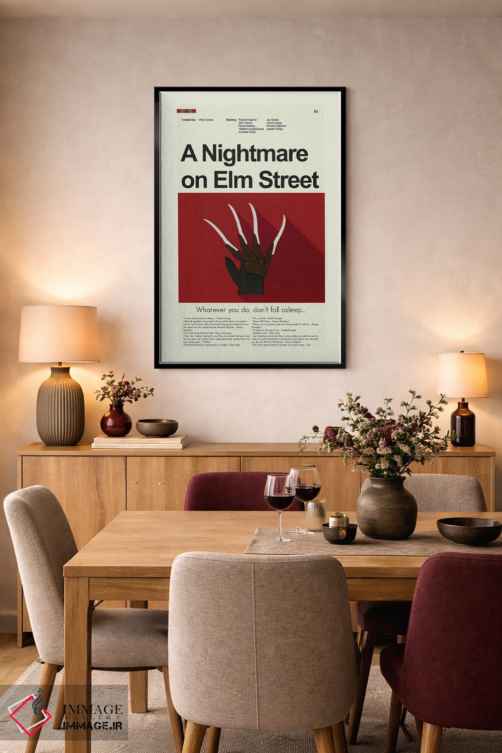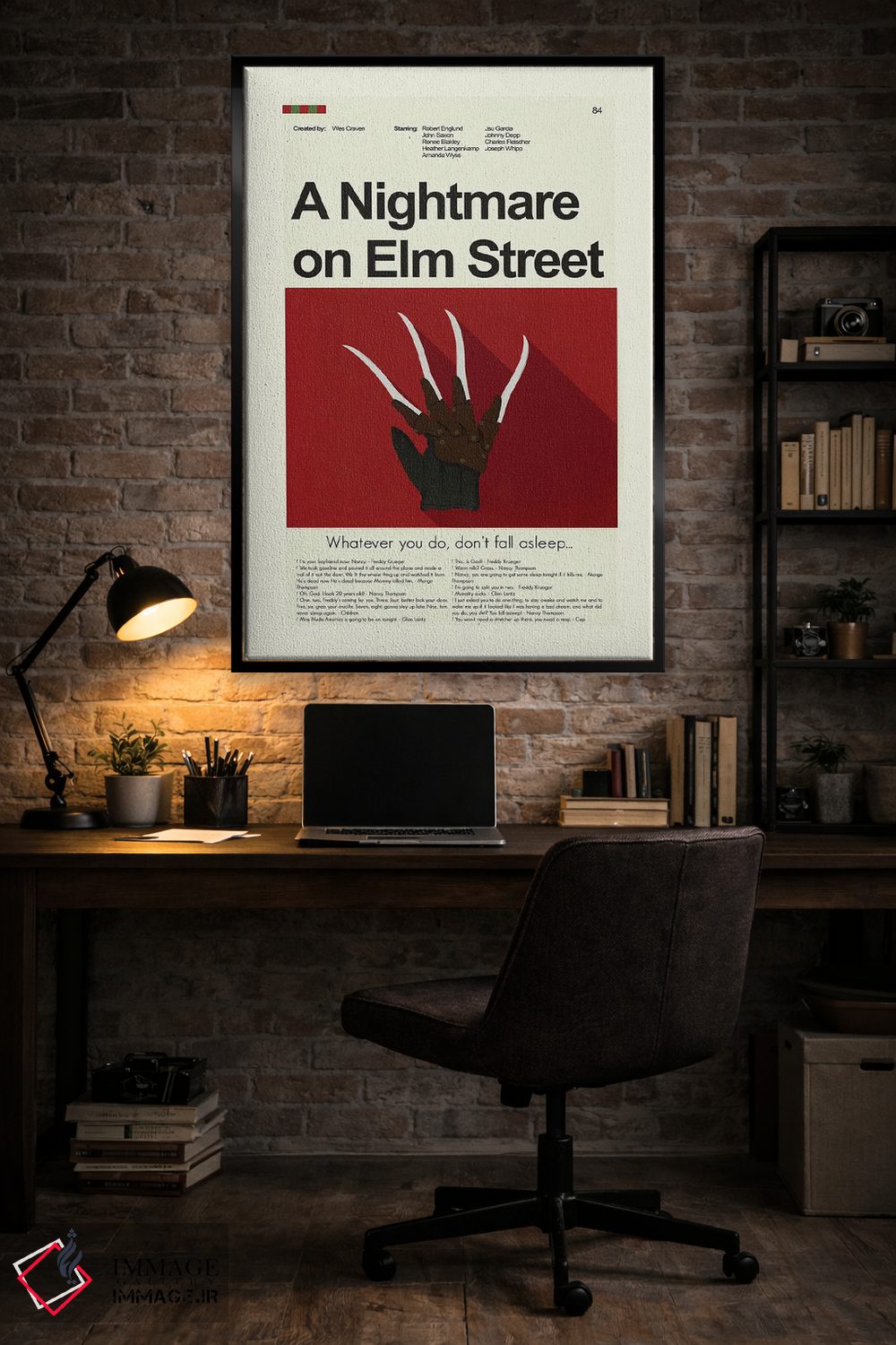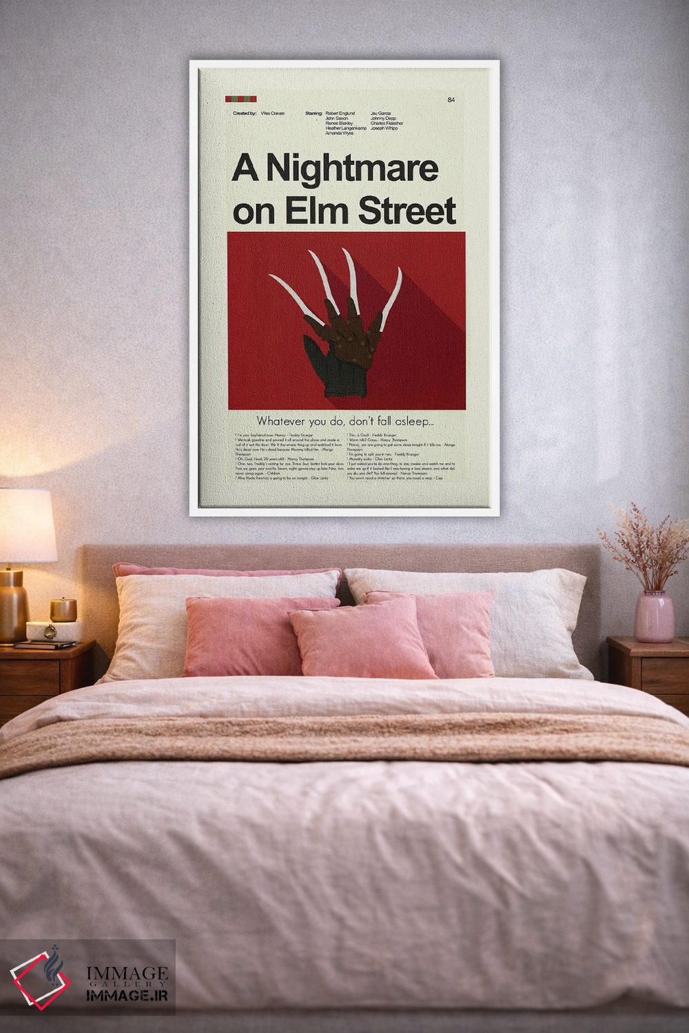 «کابوس در خیابان الم» اثرِ «پرینتس اند گیگلز اثر اَرین هیگرمن» با رویکرد هنری و موضوعِ این اثر، برای فضاهای مدرن و اتاق کار یک انتخاب دقیق و امروزی است.