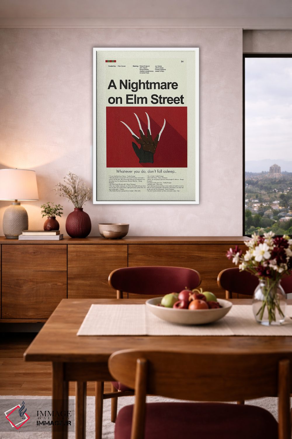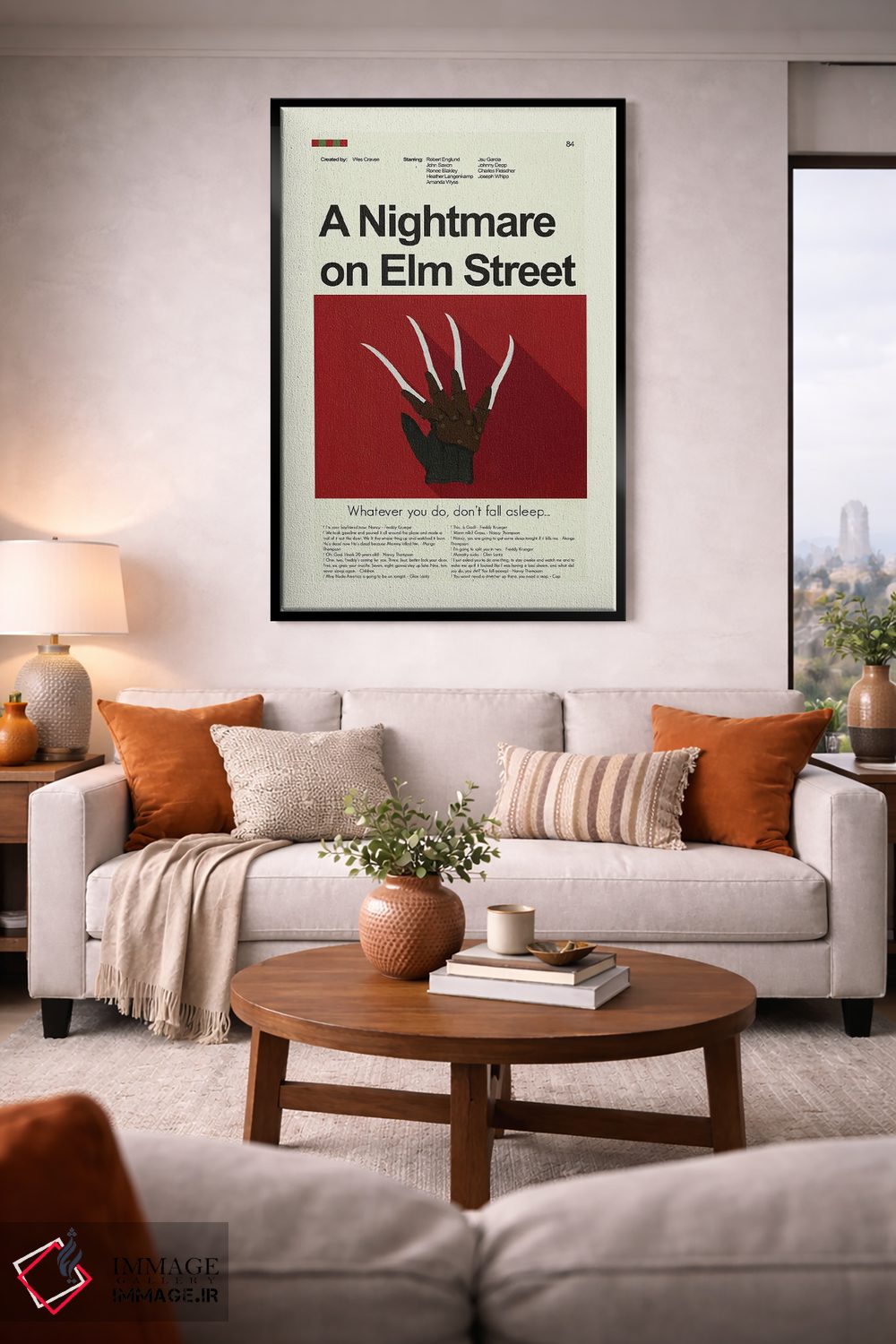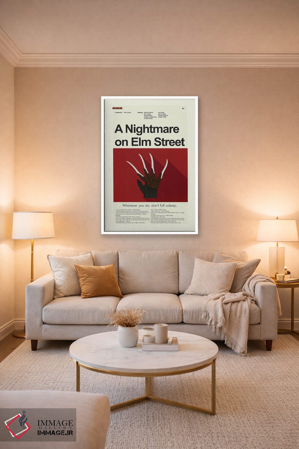 «کابوس در خیابان الم» اثرِ «پرینتس اند گیگلز اثر اَرین هیگرمن» با رویکرد هنری و موضوعِ این اثر، برای فضاهای مدرن و اتاق کار یک انتخاب دقیق و امروزی است.