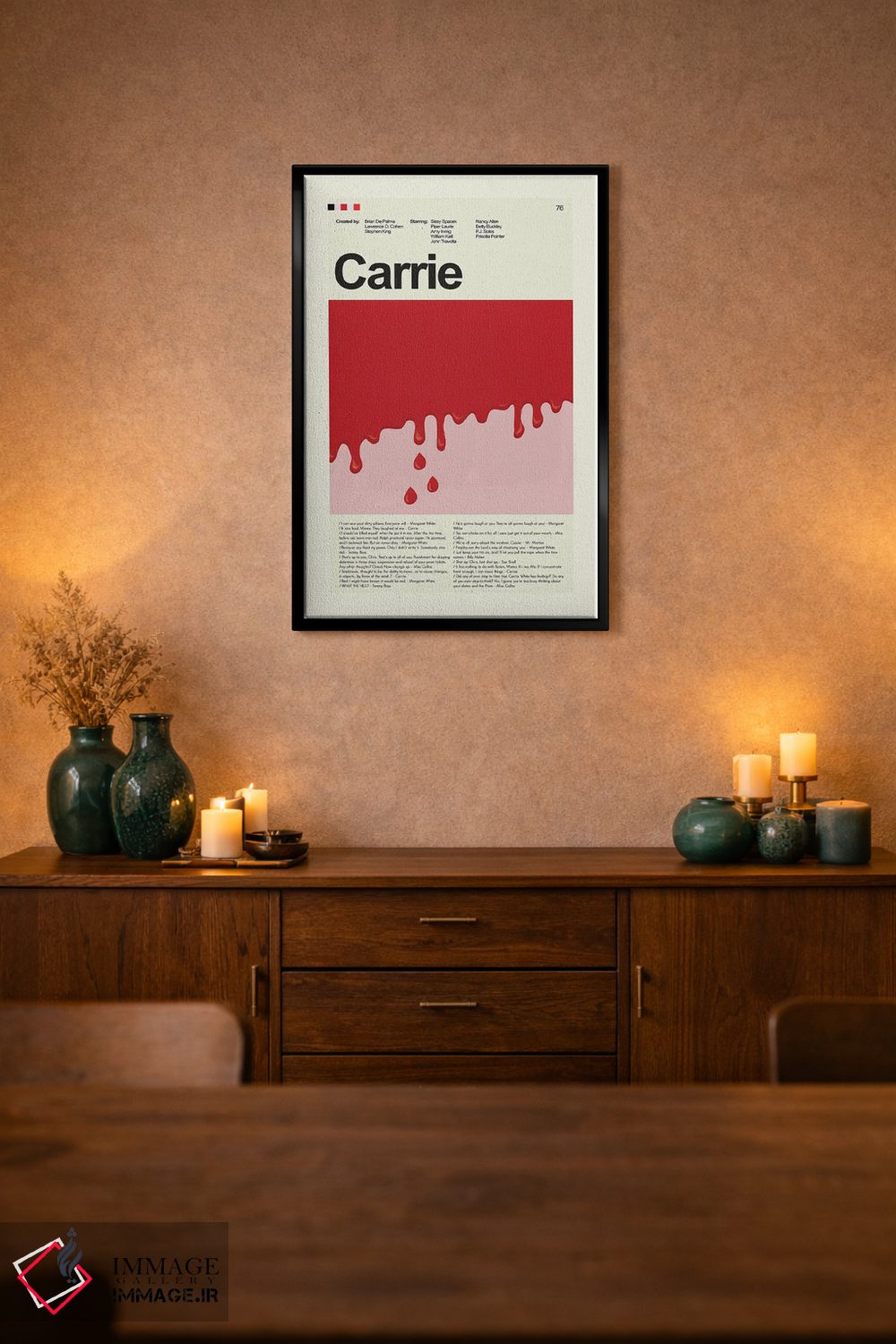 براساس پالت گرم اثر، قاب تیک گرم (چوبی) پیشنهاد اول است و مشکی مات (فریم متوسط) مکمل.