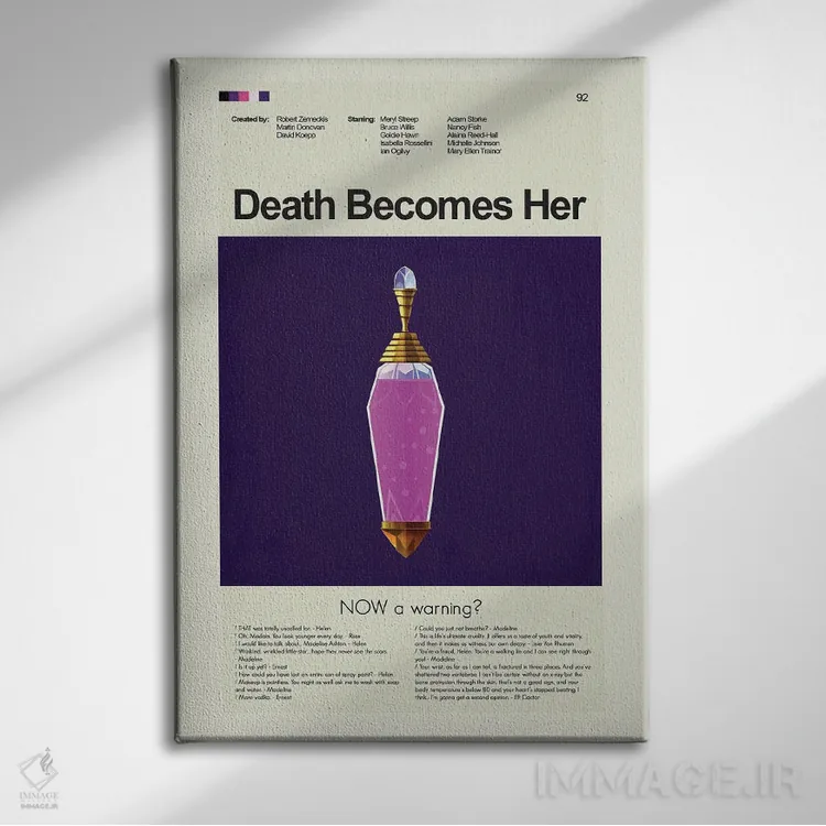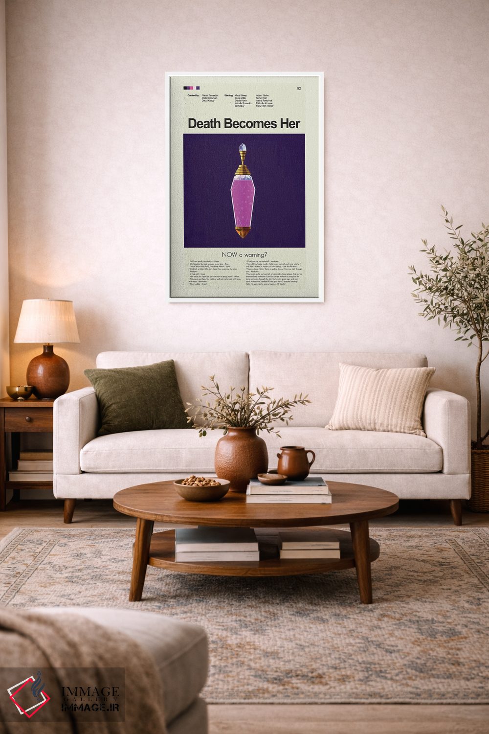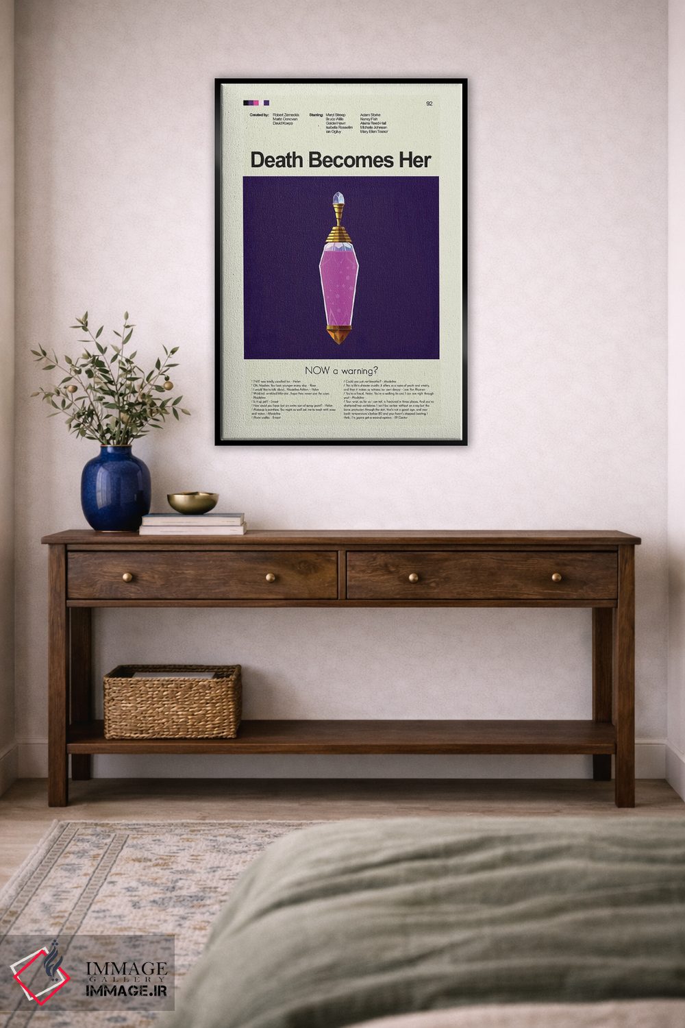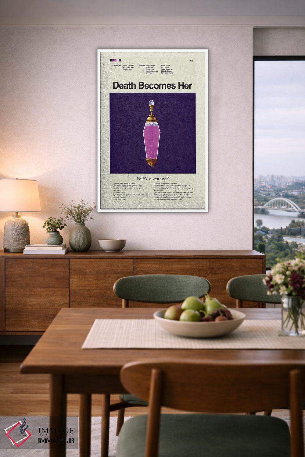 این تابلو با عنوان «مرگ او را میسازد» اثرِ «پرینتس اند گیگلز اثر اَرین هیگرمن» یک «نقطهٔ مکث» خوشسلیقه میسازد؛ برای دکورهای کلاسیک با چوب و پارچه پیشنهاد میشود. برای هدیه دادن هم انتخابی محترمانه و امن است.