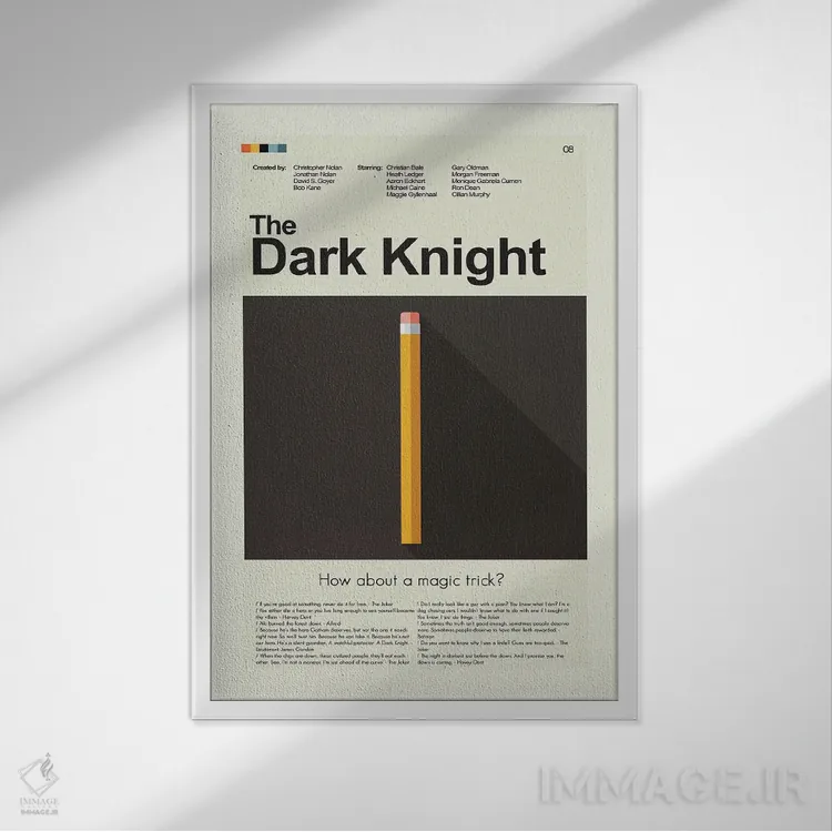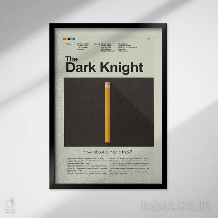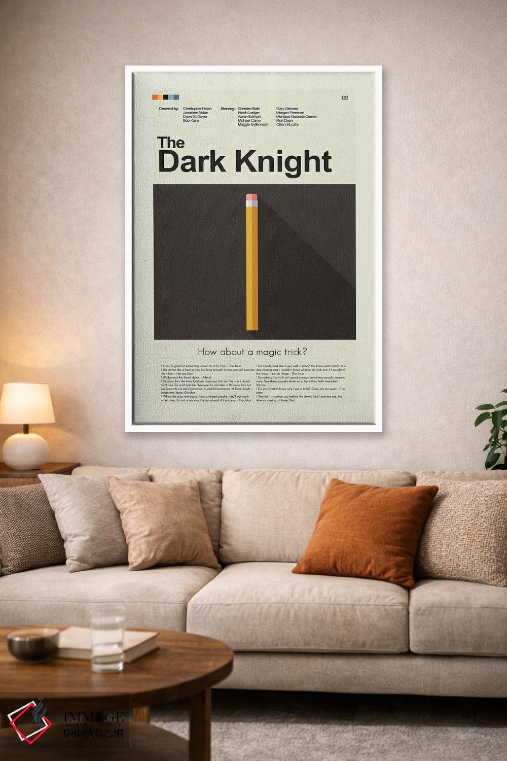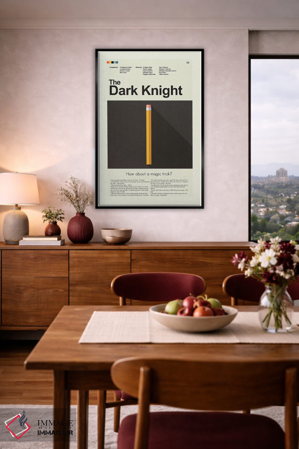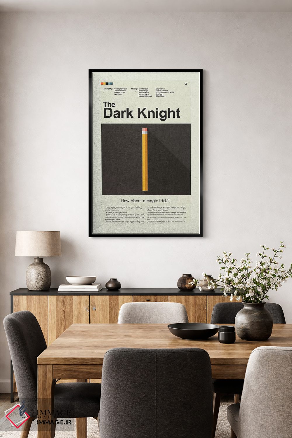 «شوالیه تاریکی» اثرِ «پرینتس اند گیگلز اثر اَرین هیگرمن» یک قاب مدرن و خوشفرم است؛ موضوعِ این اثر در اجرای هنری خوانا و سئوپذیرِ دیواری میشود.