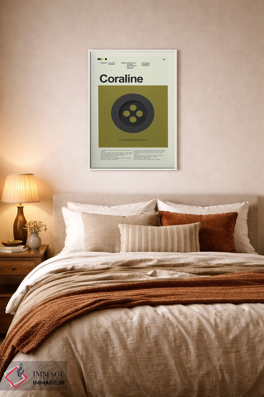 بوم گالری ایماژ نسخهی چیدماناتیوِ سطحبالا از یک اثر هنری است؛ روی کنواس سفیدِ یکدست و بدون اسید با فرآیند چاپ حرفهای جیکلی (Giclée) و کنترل دقیق تونها با رنگدانههای آرشیوی و سیستم رنگ دقیق؛ رنگها روی دیوار متعادلتر و سایهها جزئیتر دیده میشوند. کلافکشی مرتب و یراق نصب استاندارد، تجربهی نصب را ساده میکند.