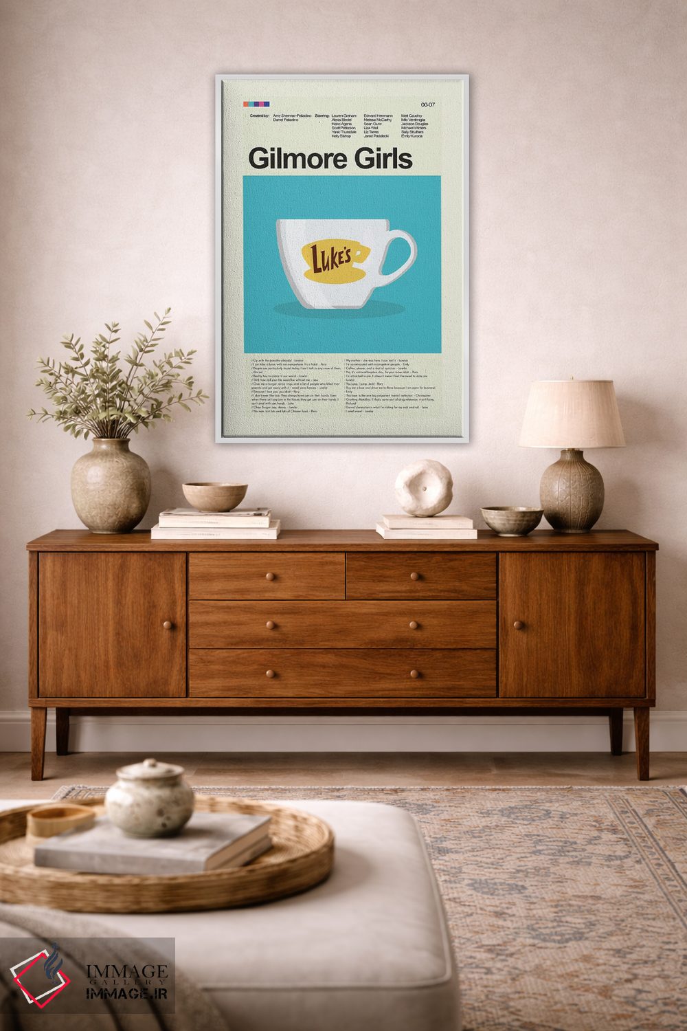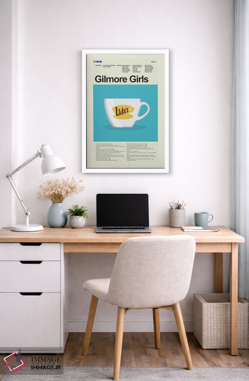 «دختران گیلمور» اثرِ «پرینتس اند گیگلز اثر اَرین هیگرمن» با موضوعِ این اثر، برای استودیوها، اتاق کار و چیدمانهای مدرن خیلی خوب جواب میدهد.