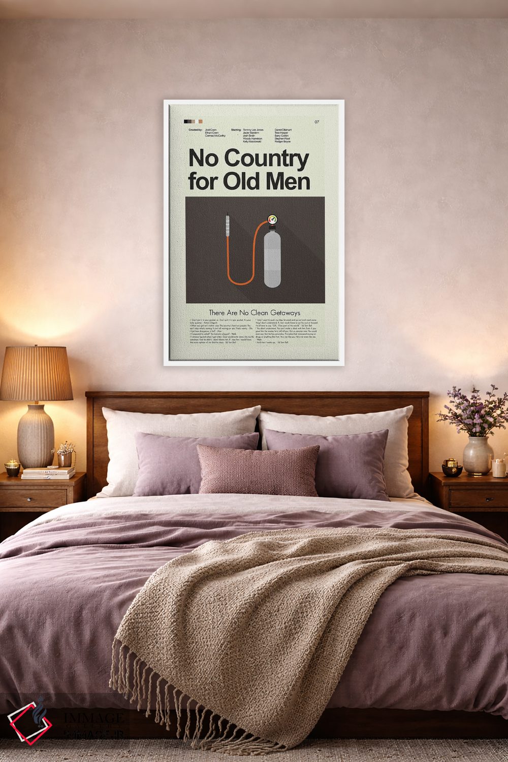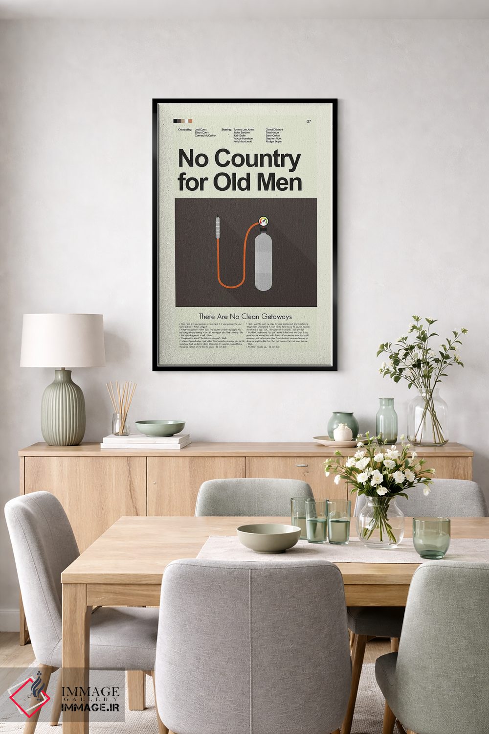 در «سرزمین هیچکس برای پیرمردها نیست» اثرِ «پرینتس اند گیگلز اثر اَرین هیگرمن»، فرم و رنگها کنترلشدهاند؛ نتیجه، یک اثر مرتب و خوشنشین برای دیوارهای مینیمال.