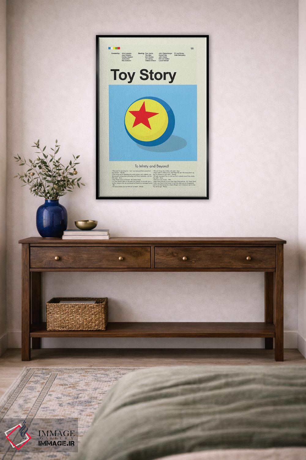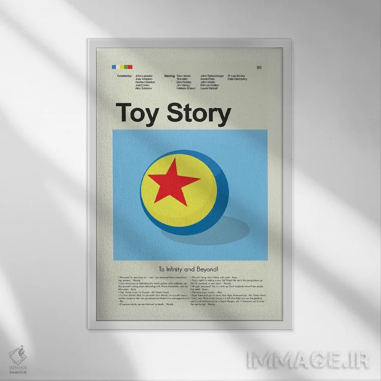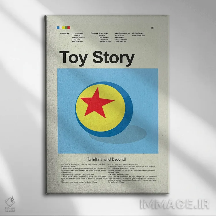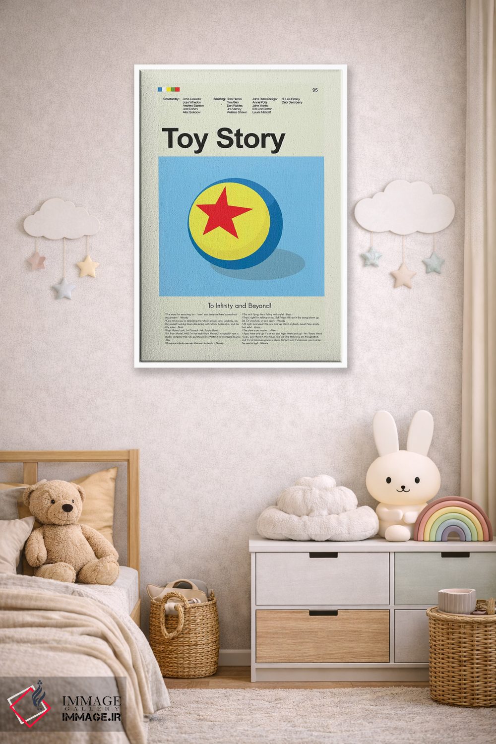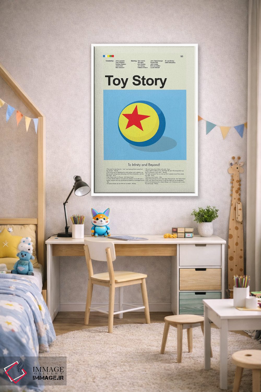 در «داستان اسباببازی (انیمیشن)» اثرِ «پرینتس اند گیگلز اثر اَرین هیگرمن»، توجه به جزئیاتِ گرافیکی و تعادل رنگی دیده میشود؛ مناسب برای دیوار شاخص.