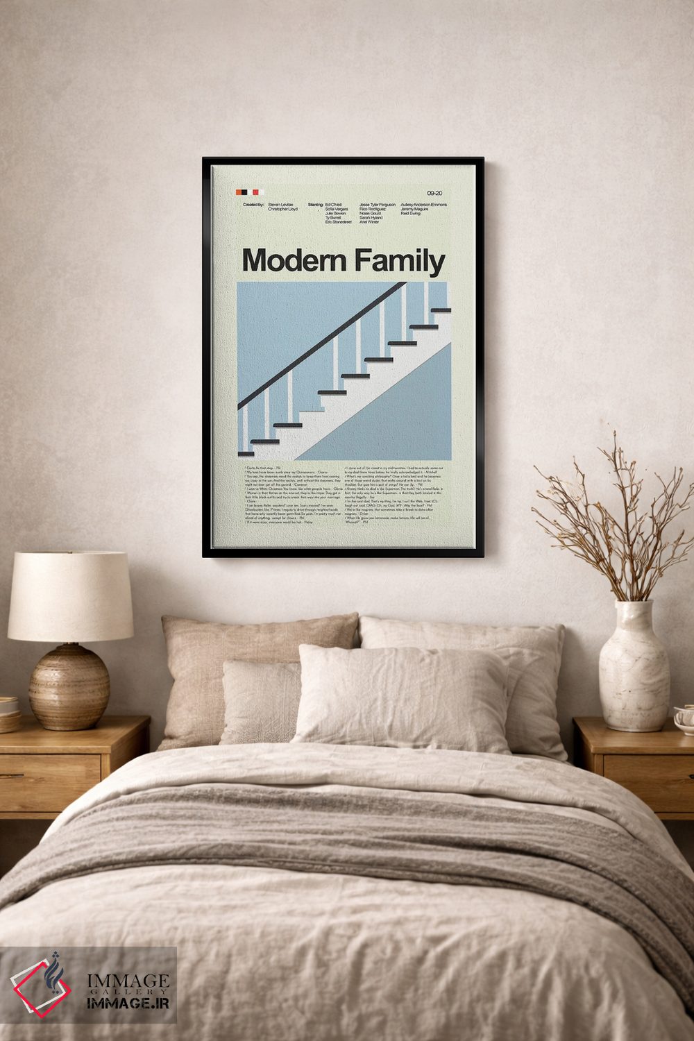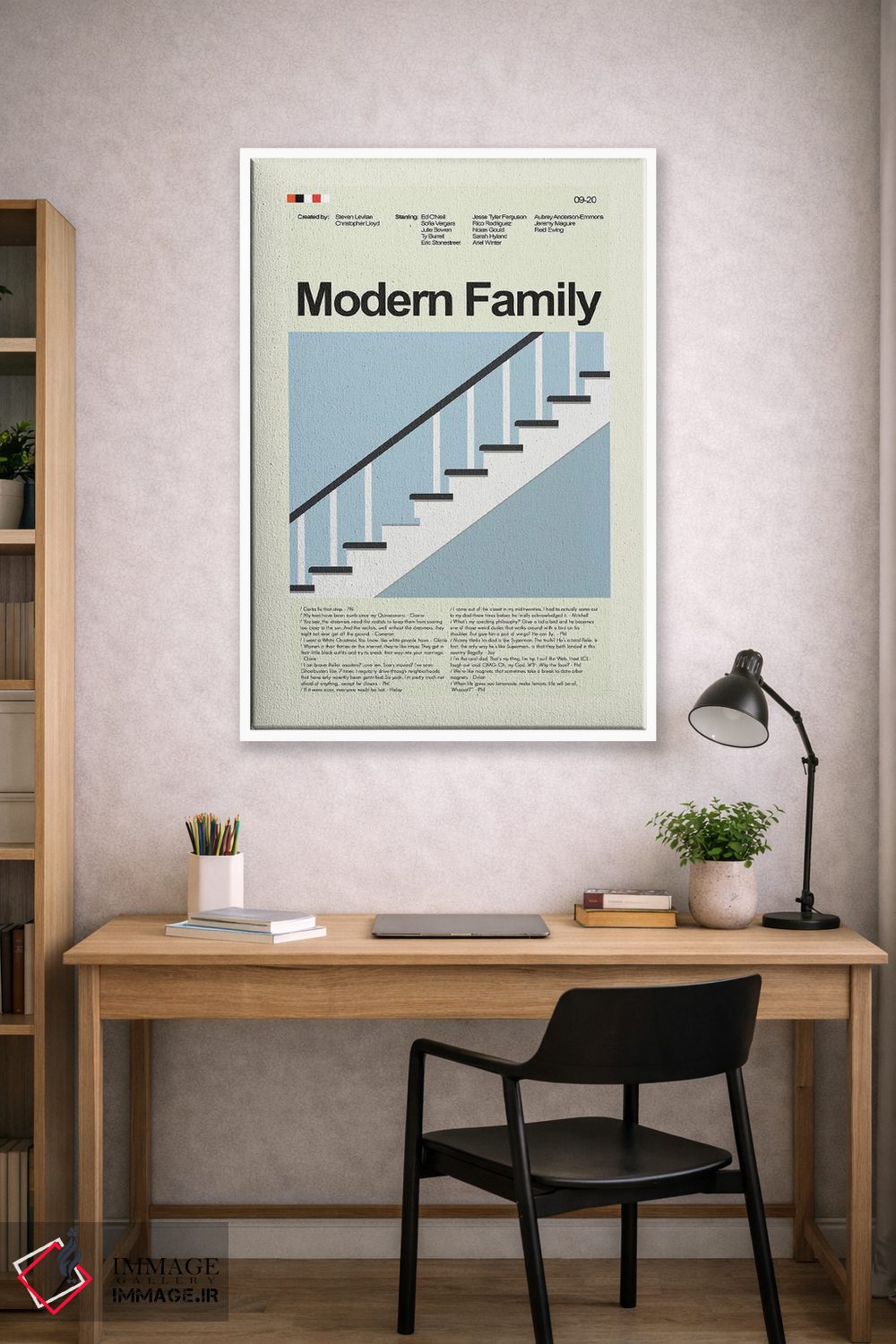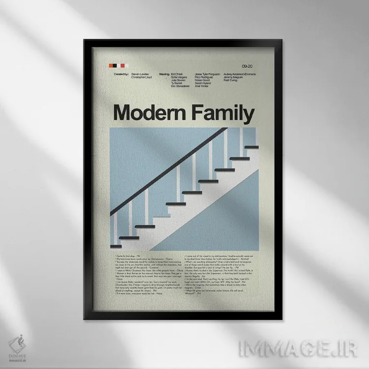 «خانواده مدرن (سریال)» اثرِ «پرینتس اند گیگلز اثر اَرین هیگرمن» با موضوعِ این اثر، برای استودیوها، اتاق کار و چیدمانهای مدرن خیلی خوب جواب میدهد.