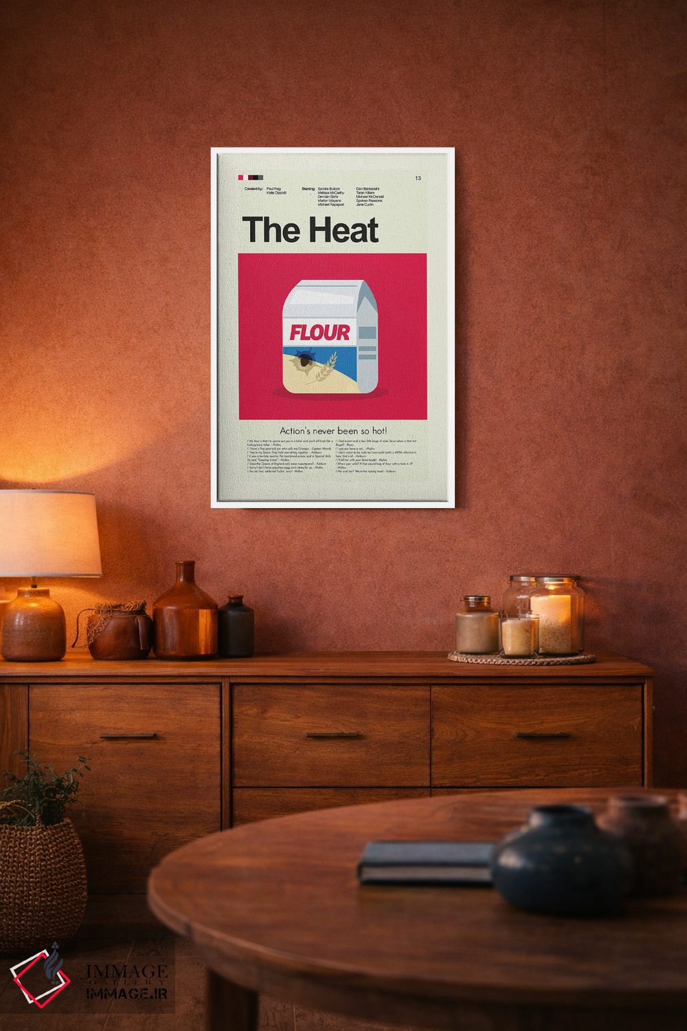 این اثر با عنوان «هیئت (فیلم)» اثرِ «پرینتس اند گیگلز اثر اَرین هیگرمن»، تمیز و دقیق است؛ مناسب دیوارهای مینیمال.