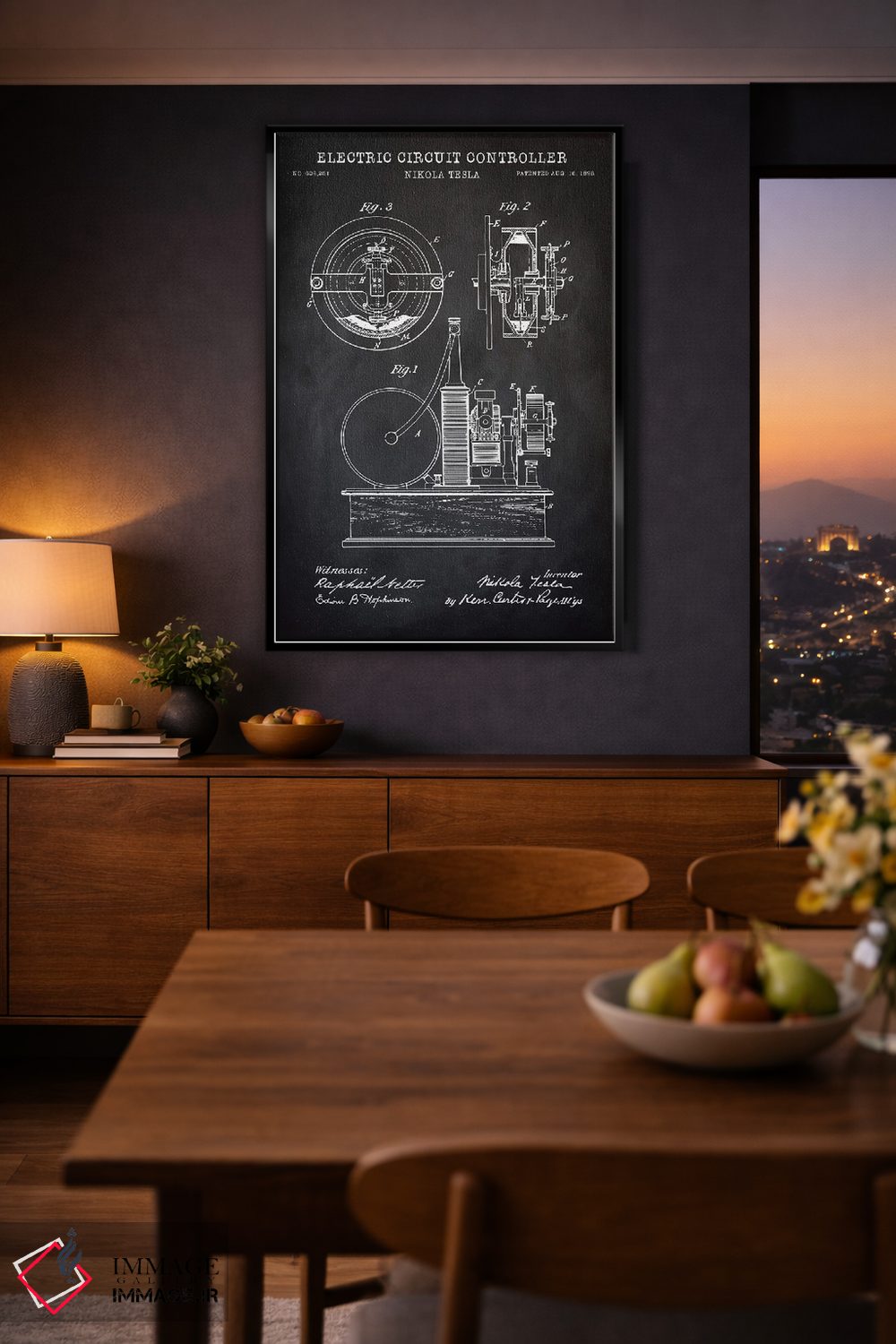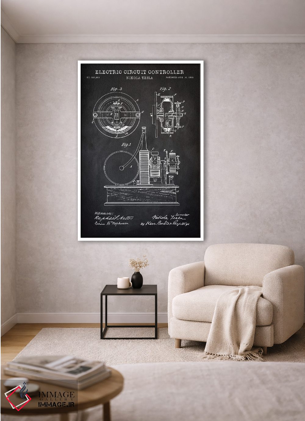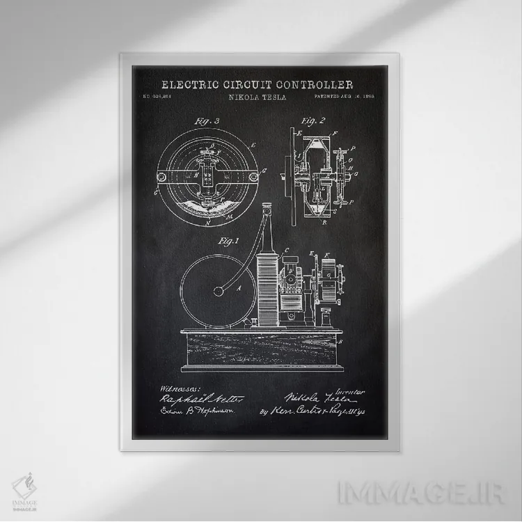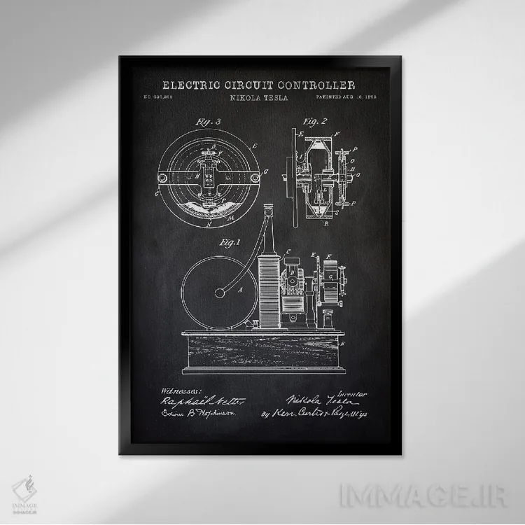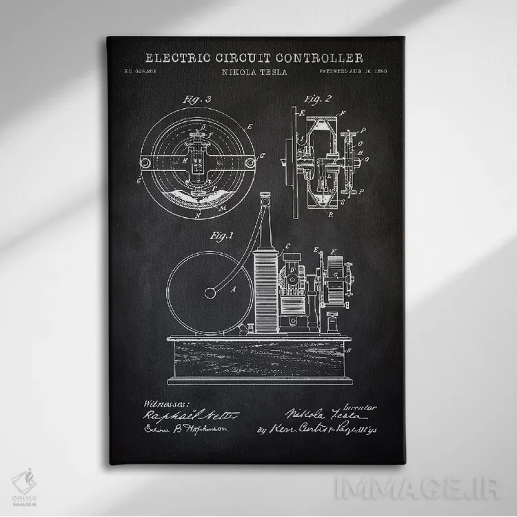 تابلو دکوراتیو کنترل کننده مدار الکتریکی تسلا، سیاه اثر پتنت پرینت استور