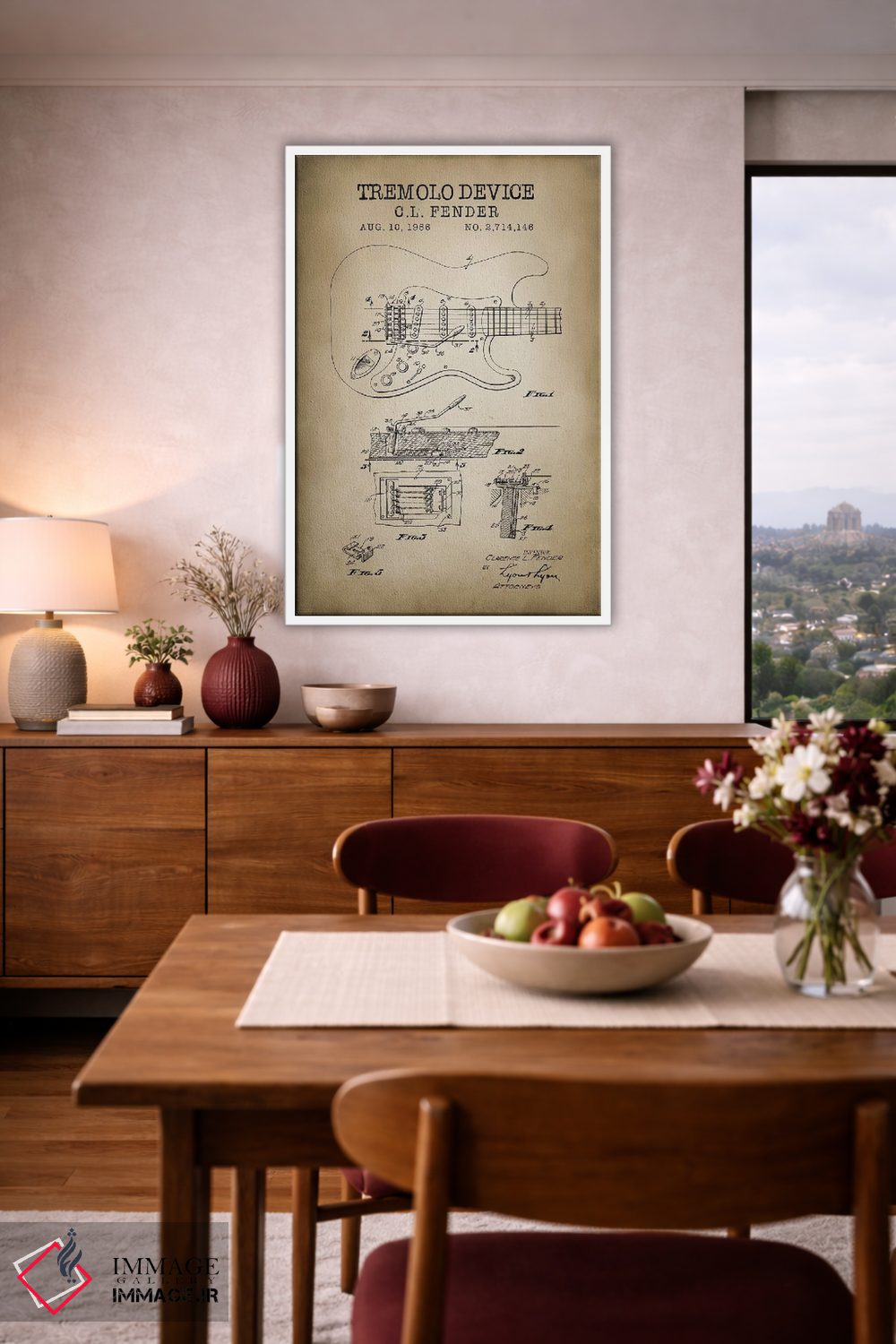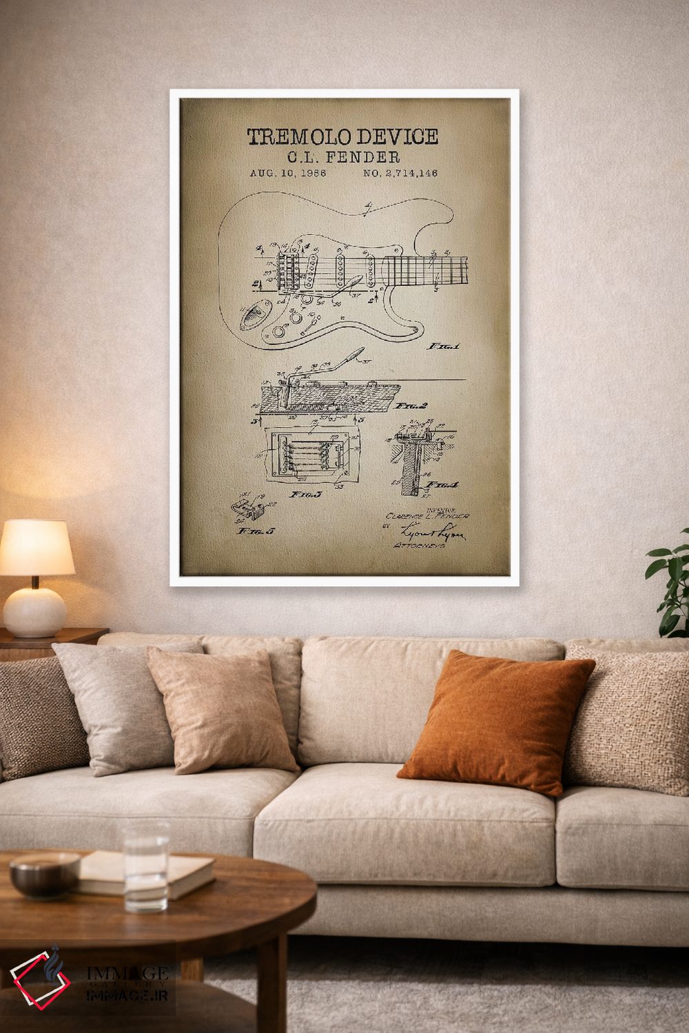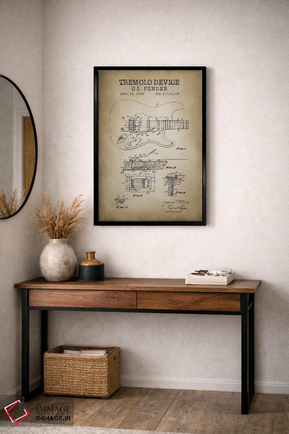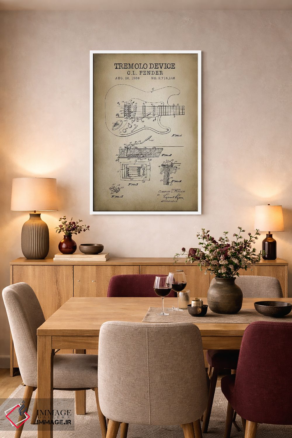 براساس پالت گرم اثر، قاب بلوط روشن (چوبی) پیشنهاد اول است و استخوانی ملایم مکمل. برای سفارشهای پروژهای با ابعاد و قابهای اختصاصی با ایماژ در تماس باشید.