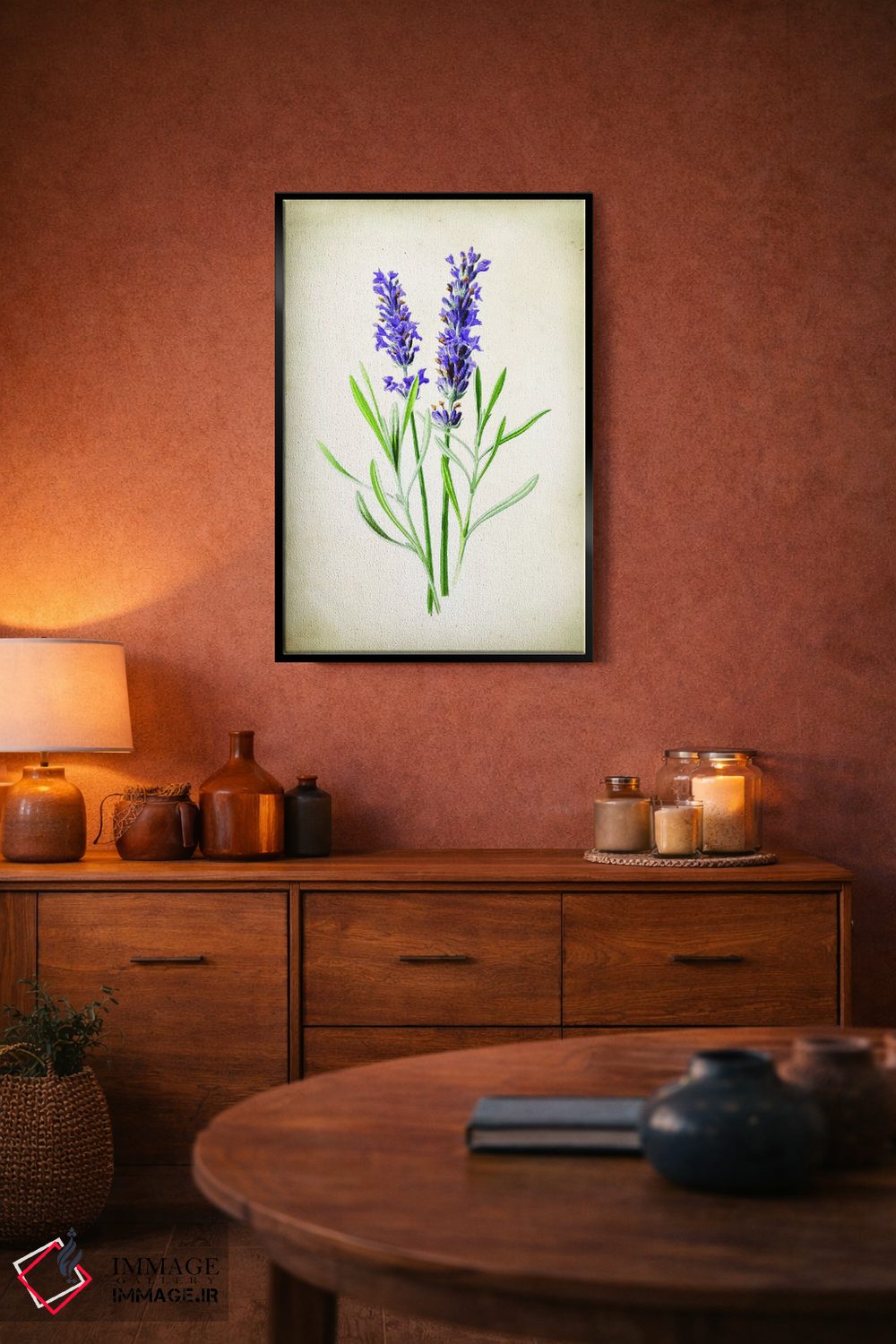 برای اتاق خواب و نشیمنهای آرام، «اسطوخودوس» اثرِ «پتنت پرینت استور (فروشگاه چاپ هنری)» حس فصل را آرام وارد فضا میکند؛ برای کنار میز آرایش یا کنسول انتخابی خوشسلیقه است. فضا را شلوغ نمیکند؛ فقط لطیفترش میکند.