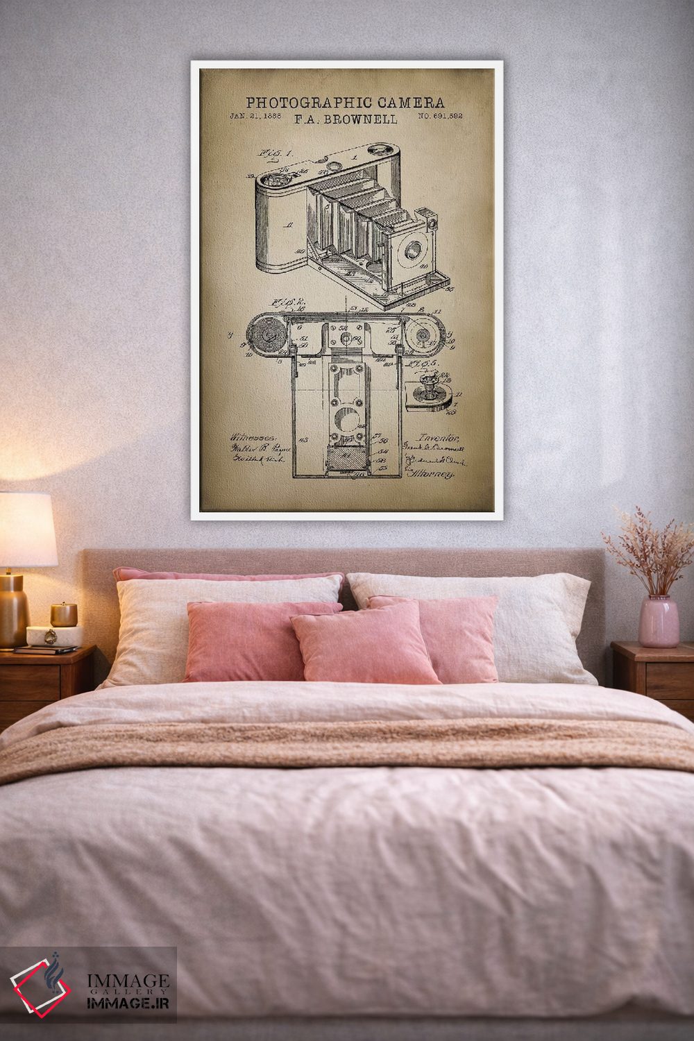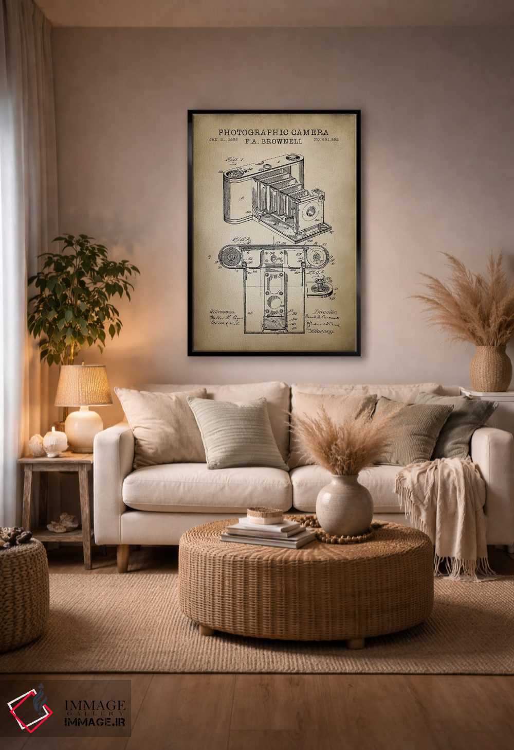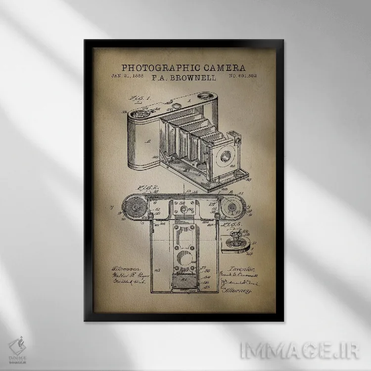 «دوربین براونل، بژ» اثرِ «پتنت پرینت استور (فروشگاه چاپ هنری)» یک قاب دکوراتیوِ خوشخوان است؛ این اثر در آن بهجای اغراق، با ظرافت و تناسب دیده میشود.