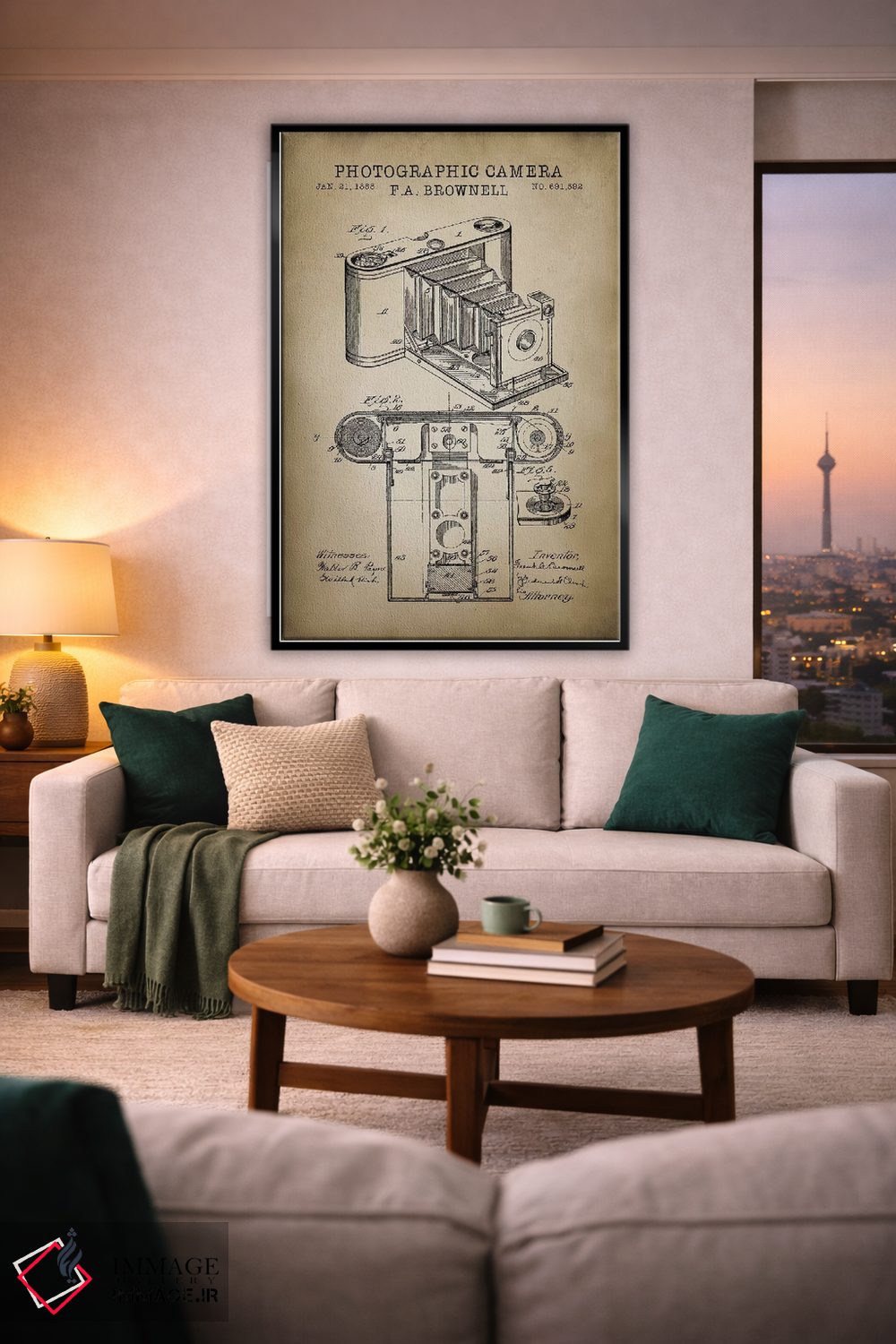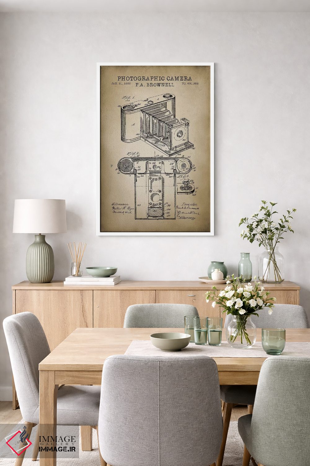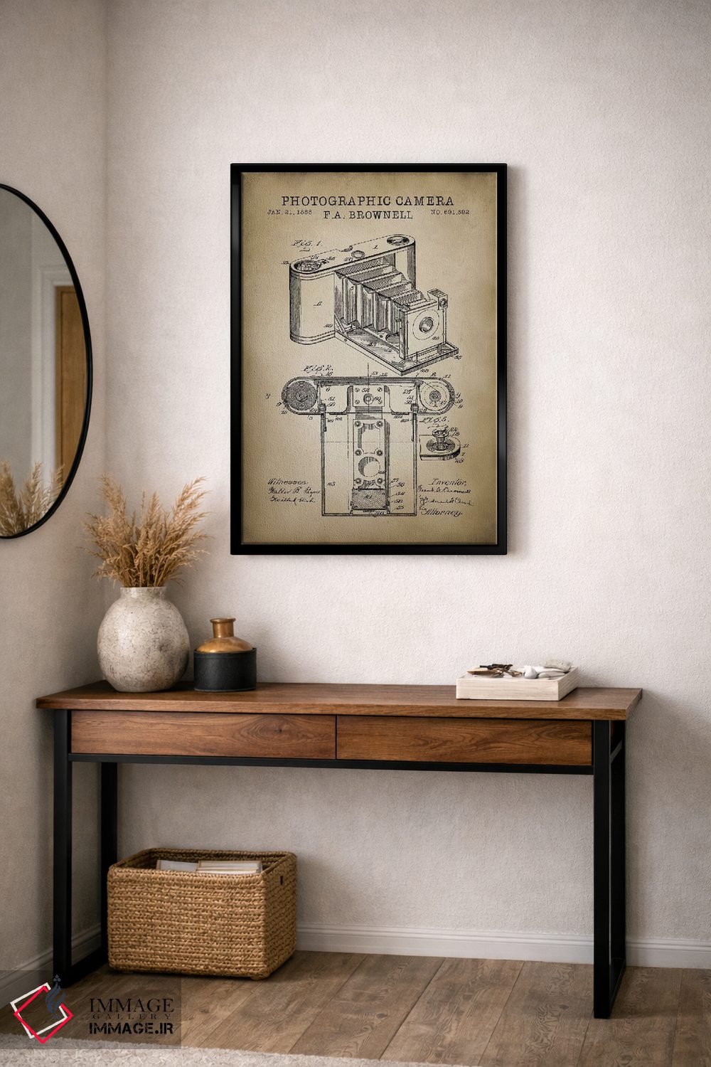 «دوربین براونل، بژ» اثرِ «پتنت پرینت استور (فروشگاه چاپ هنری)» یک قاب دکوراتیوِ خوشخوان است؛ این اثر در آن بهجای اغراق، با ظرافت و تناسب دیده میشود.