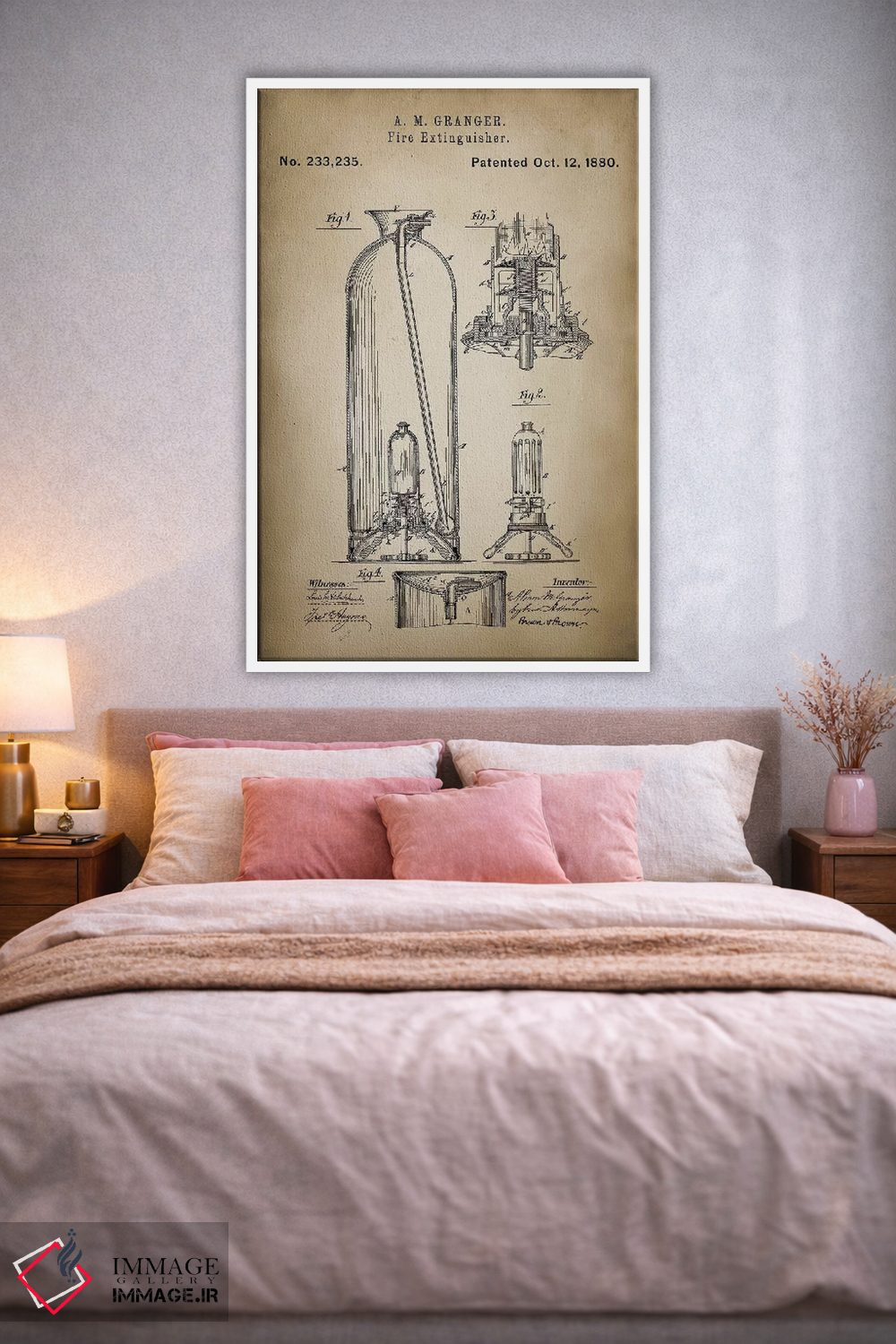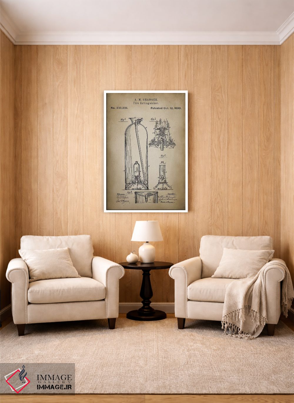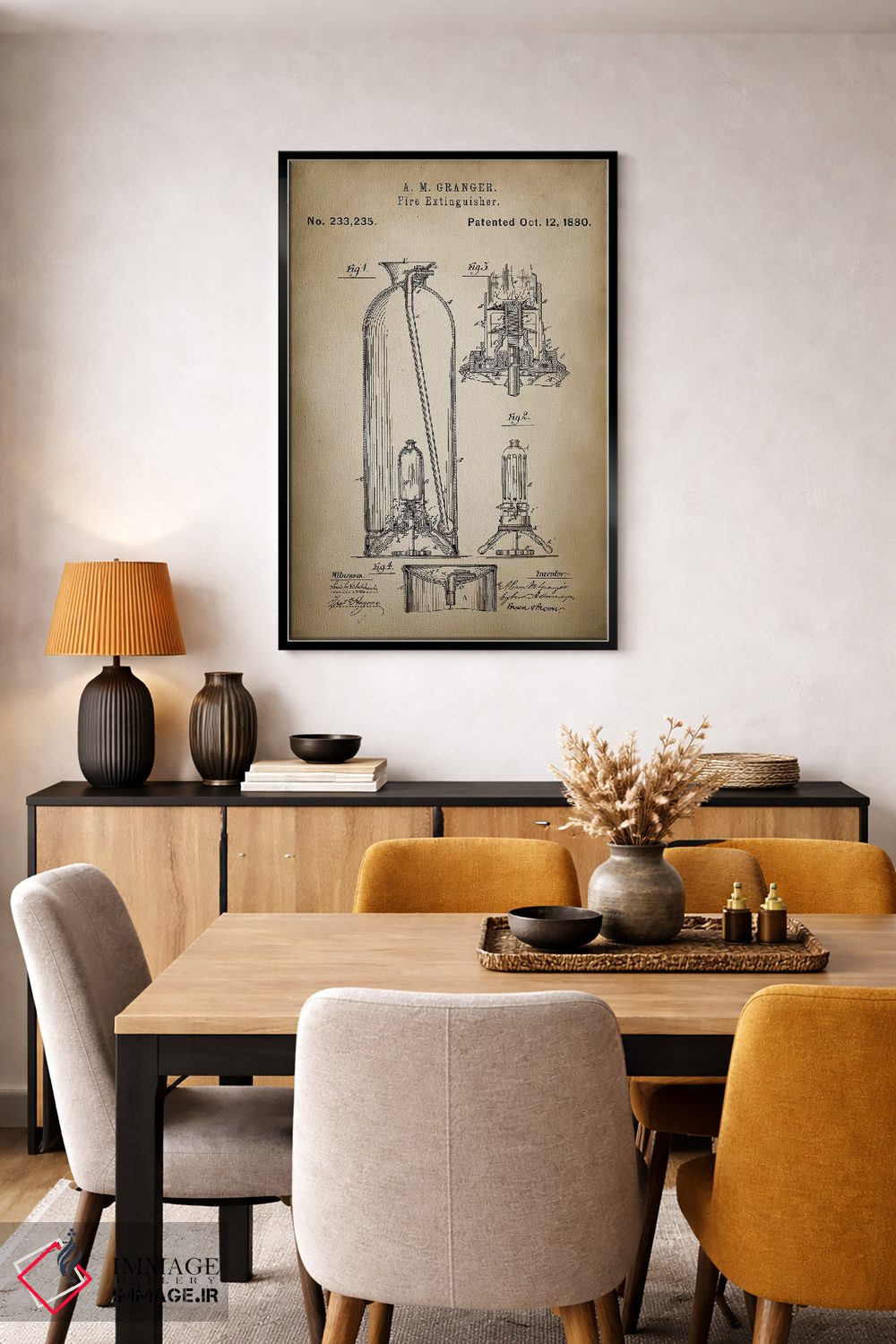 براساس پالت گرم اثر، قاب بلوط روشن (چوبی) پیشنهاد اول است و استخوانی ملایم مکمل. برای سفارشهای پروژهای با ابعاد و قابهای اختصاصی با ایماژ در تماس باشید.